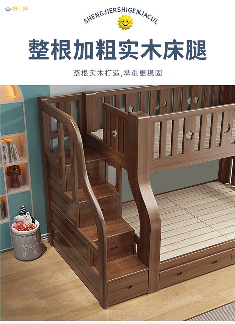 호두 모든 단단한 나무 침대 어린이 침대 침대 침대 침대 침대 침대 벙크 침대 다기능 나무 침대 침대 2 층 침대