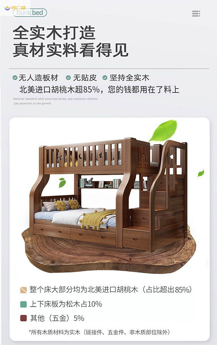 호두 모든 단단한 나무 침대 어린이 침대 침대 침대 침대 침대 침대 벙크 침대 다기능 나무 침대 침대 2 층 침대스토어 가기