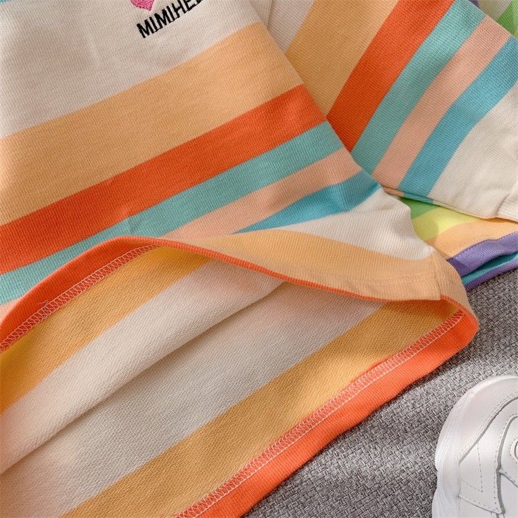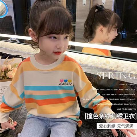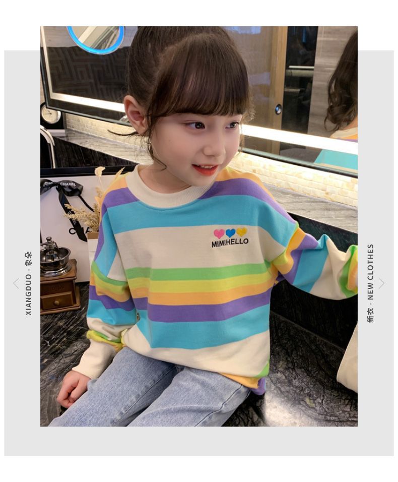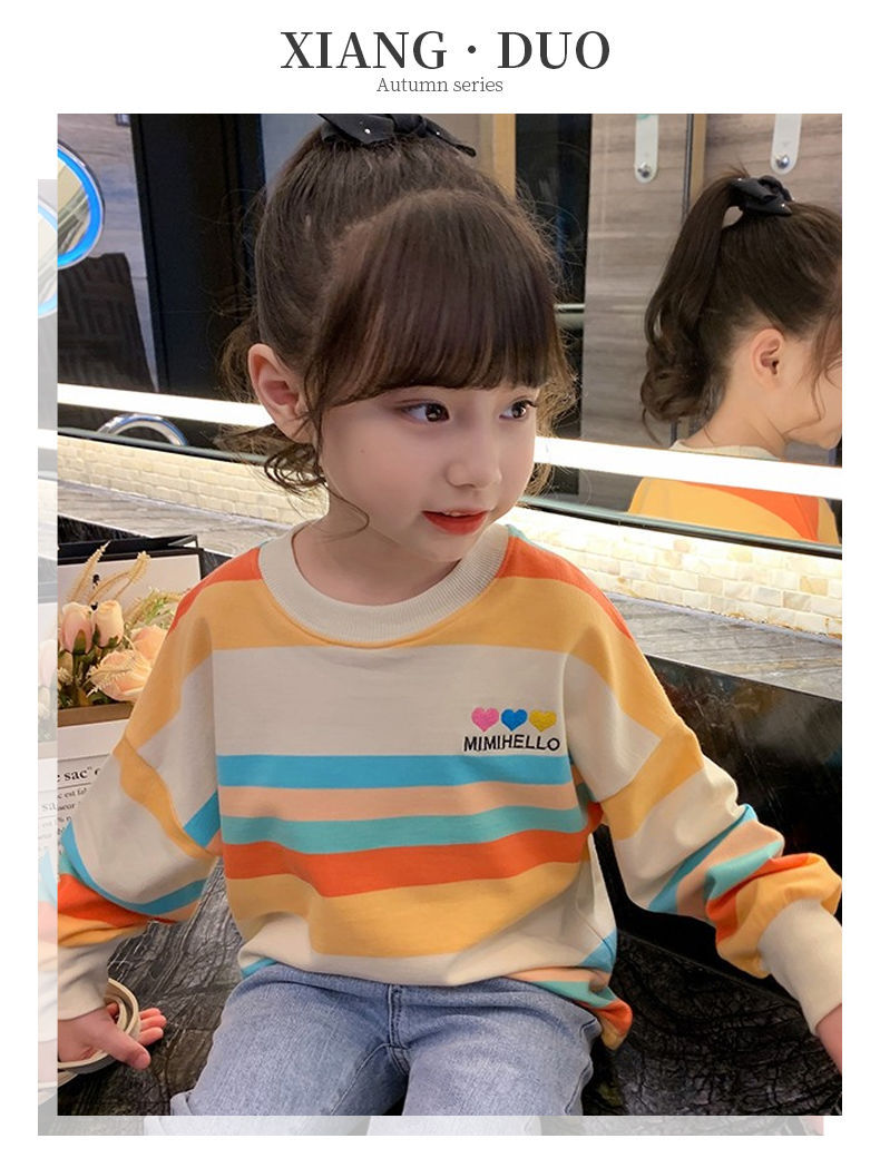 여아 레인보우 티셔츠, 스타일리쉬한 아동용 긴팔 스트라이프 스웨트셔츠, 2026년 봄 가을 신상 여아 한국 스타일 인터넷 인기 상의스토어 가기