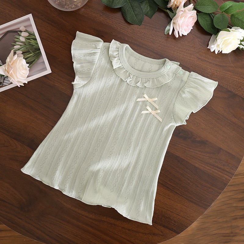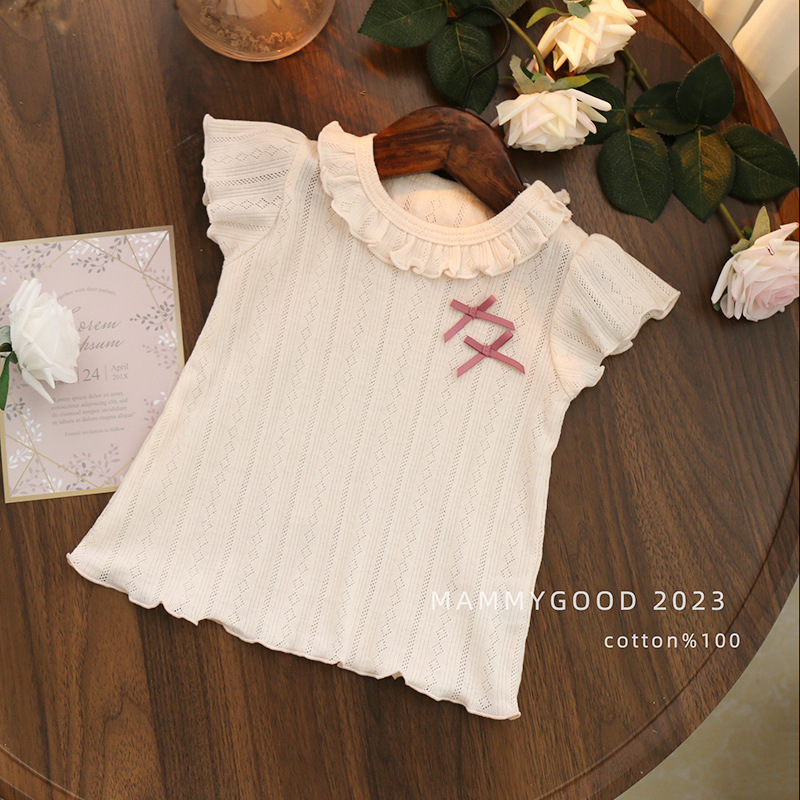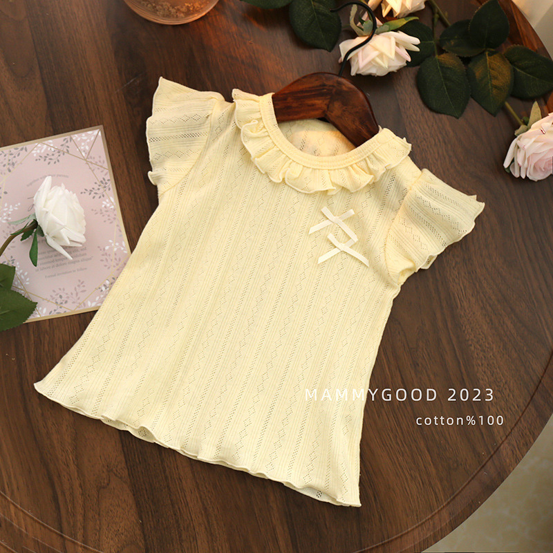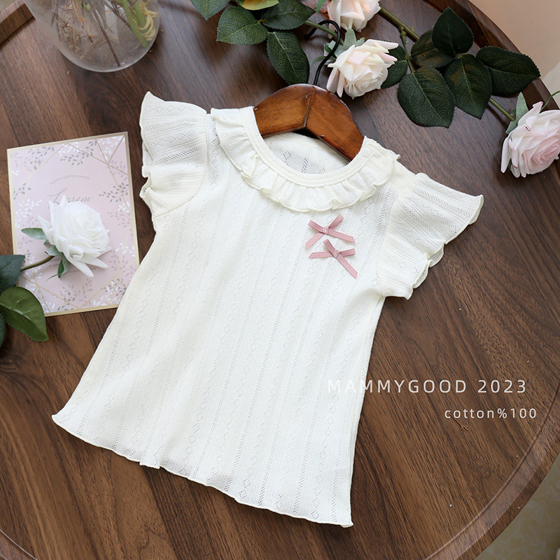 코튼 클래스 A 여름 얇은 일본과 한국 스타일 공주 스타일 어린이 탑 귀여운 소녀 아기 Bottoming 반팔 티셔츠