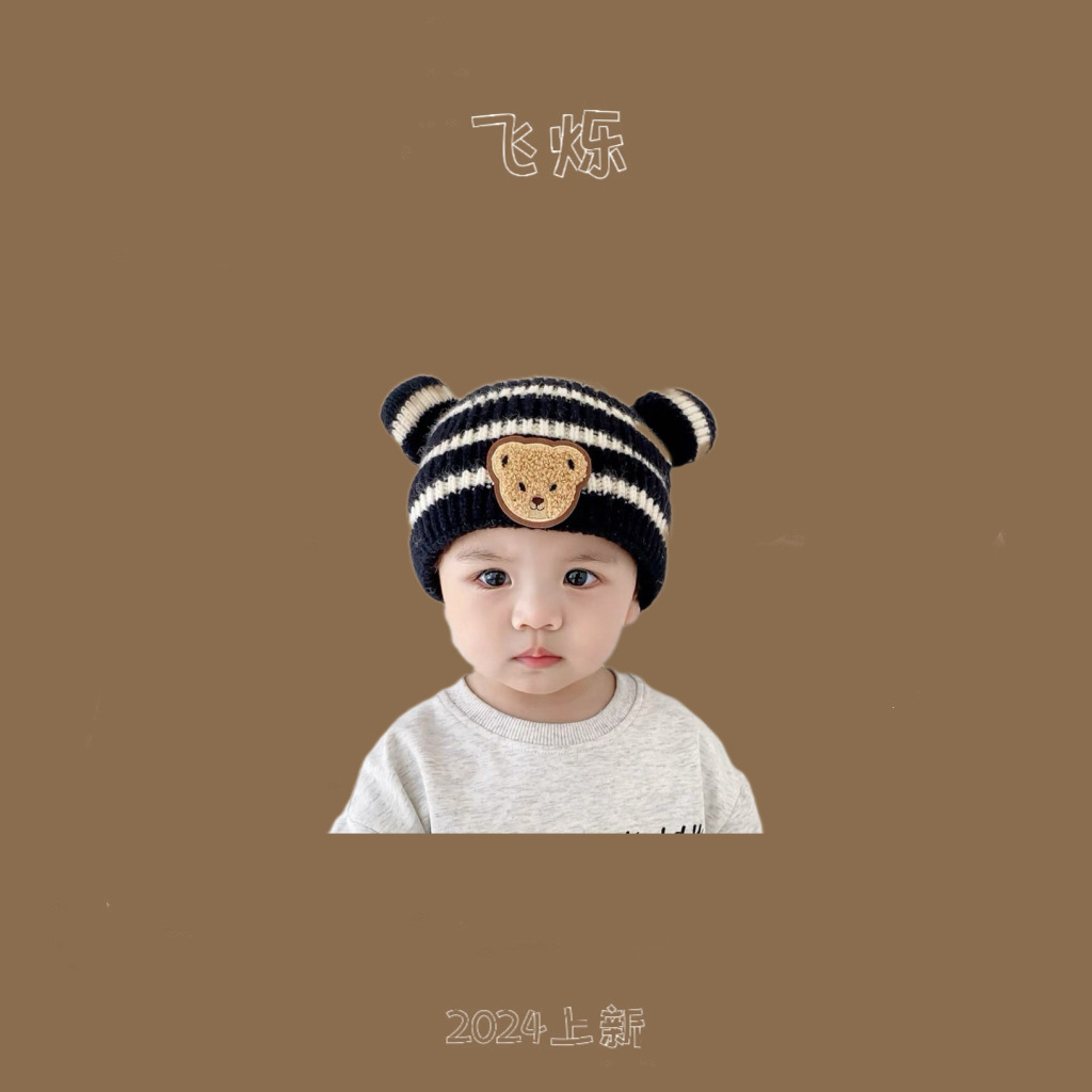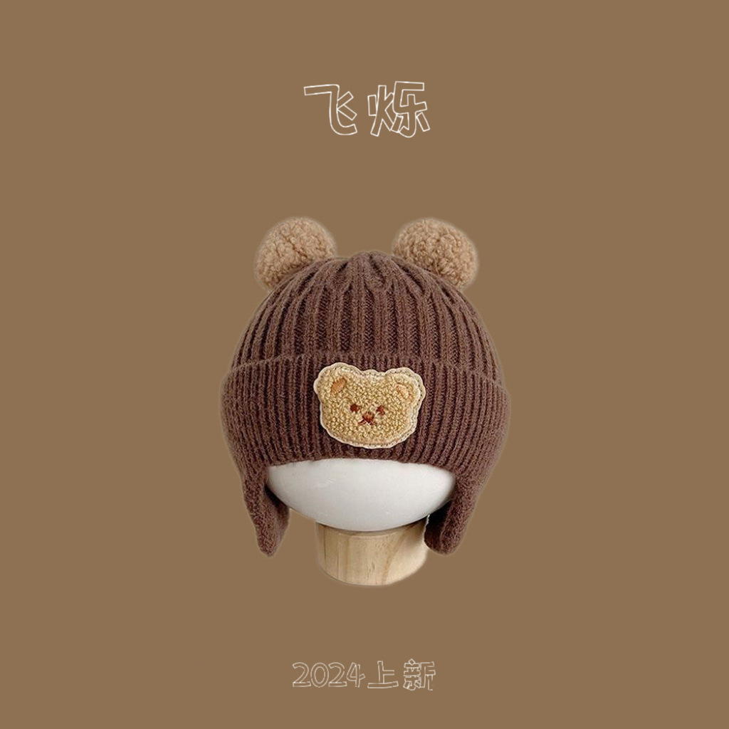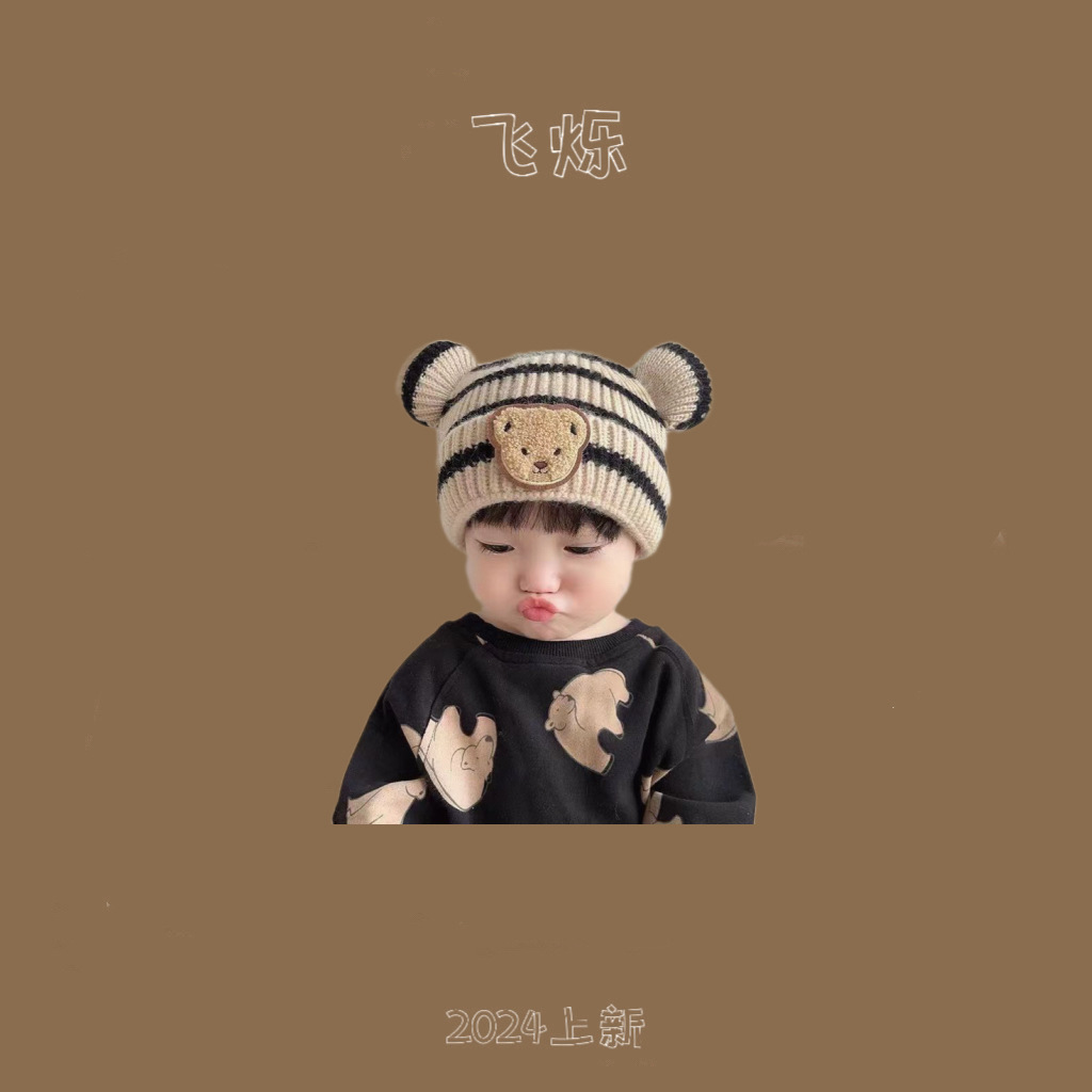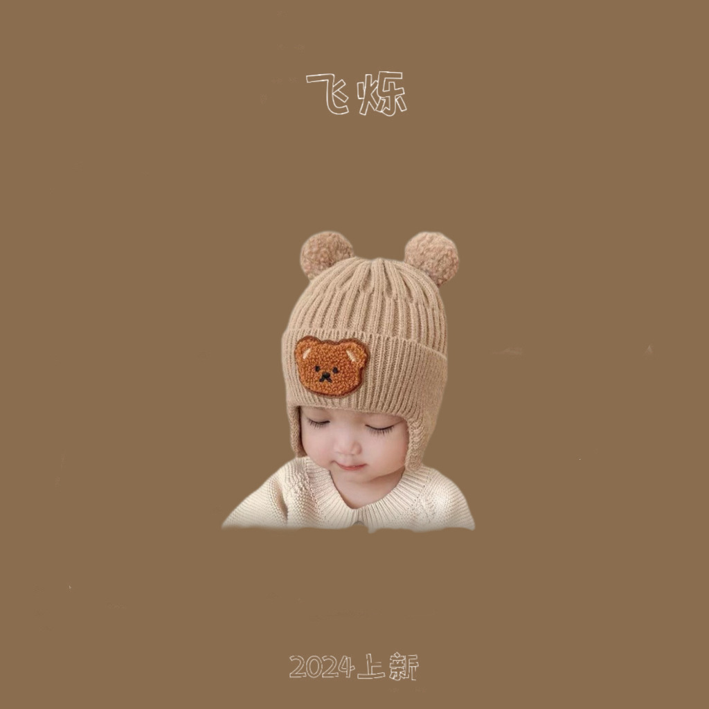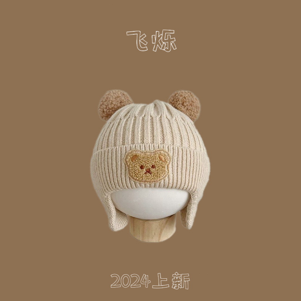 한국 스타일 곰 모자 가을과 겨울 새로운 귀여운 아기 따뜻한 귀 보호 모자 소년 소녀를위한 니트 모자 아기 울 모자