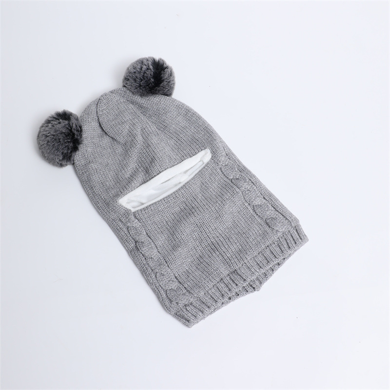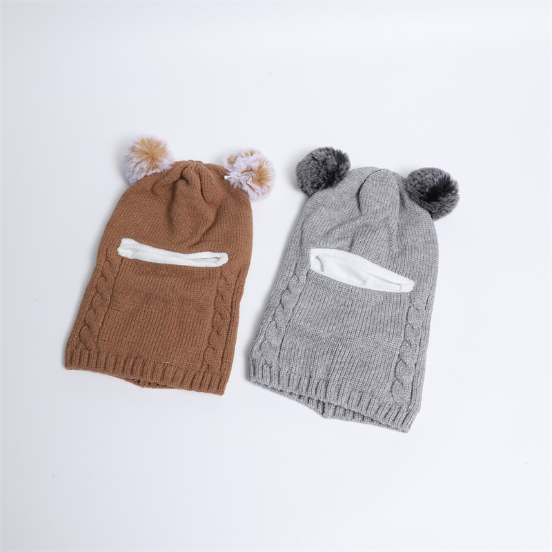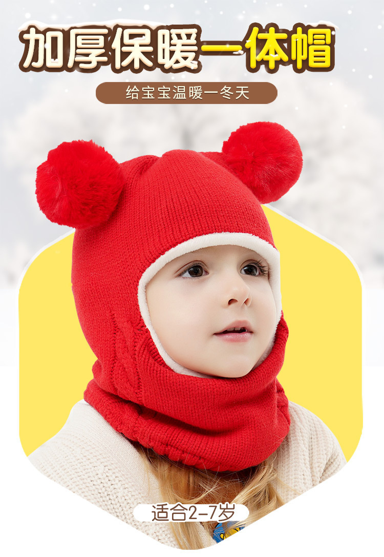 Temu 뜨거운 판매 겨울 어린이 모자 스카프 원피스 기모 귀 보호 풀오버 캡 아기 니트 어린이 원피스 캡