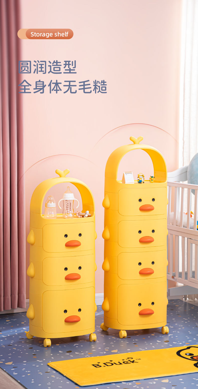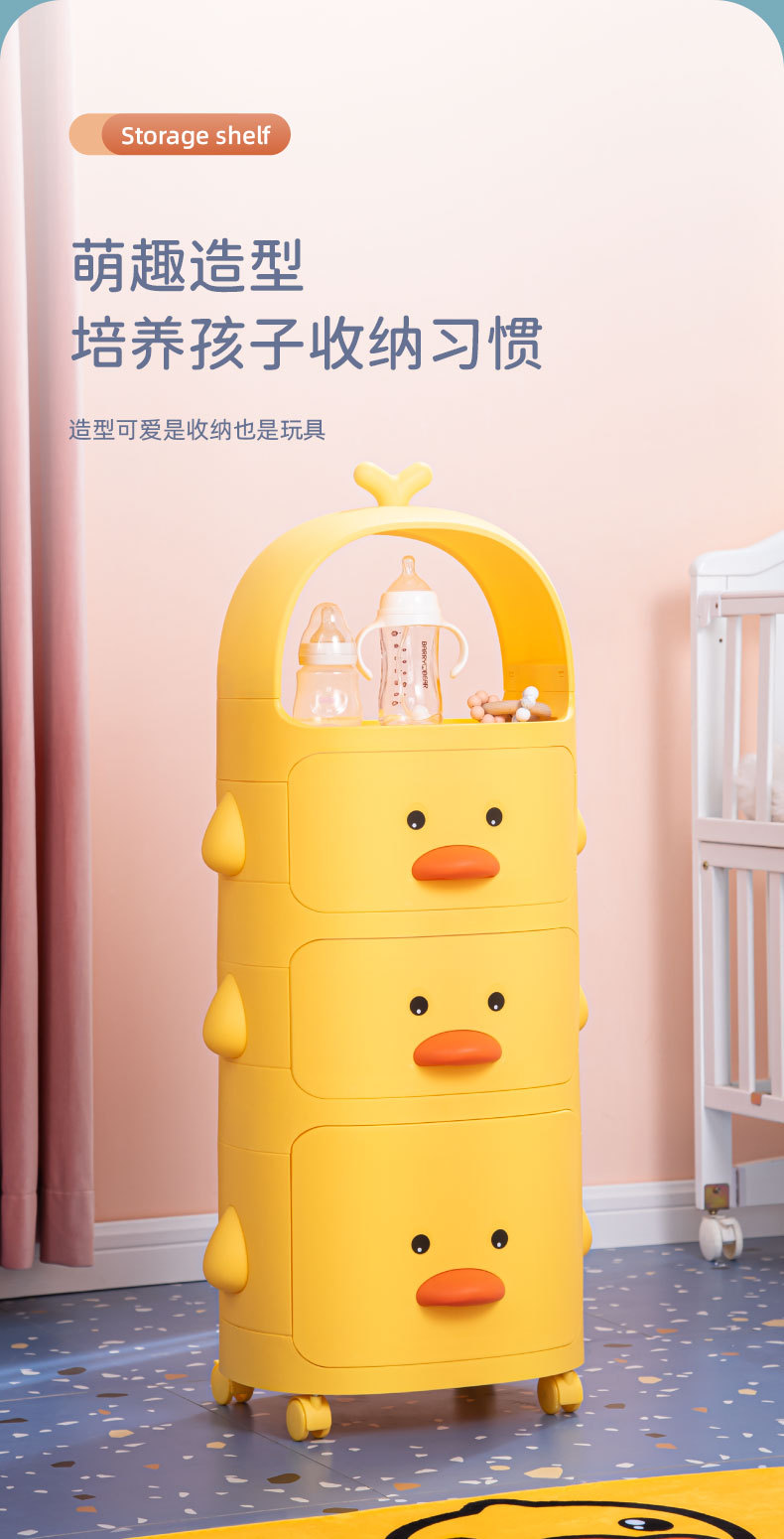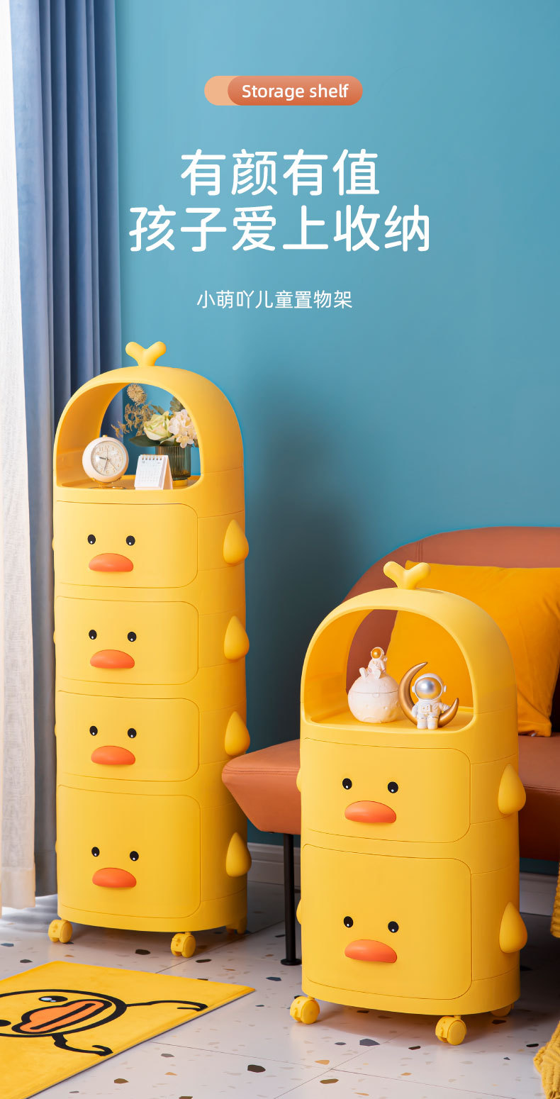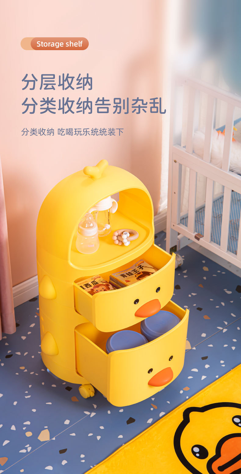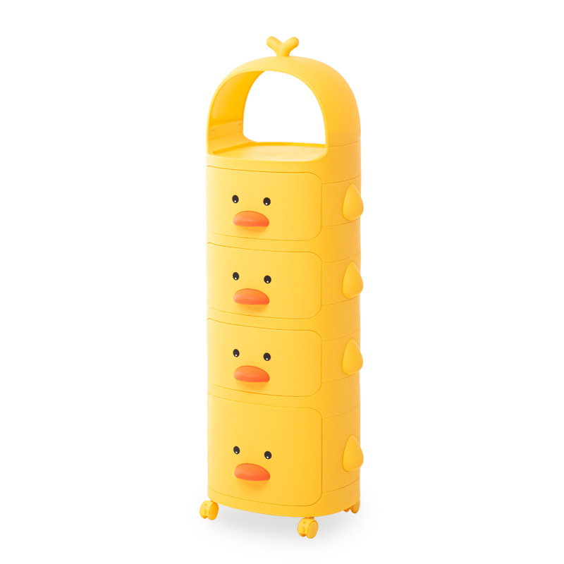 트롤리 보관 랙 노란색 오리 스낵 보관 캐비닛 다층 어린이 침실 침실 장난감 보관 랙 이동식