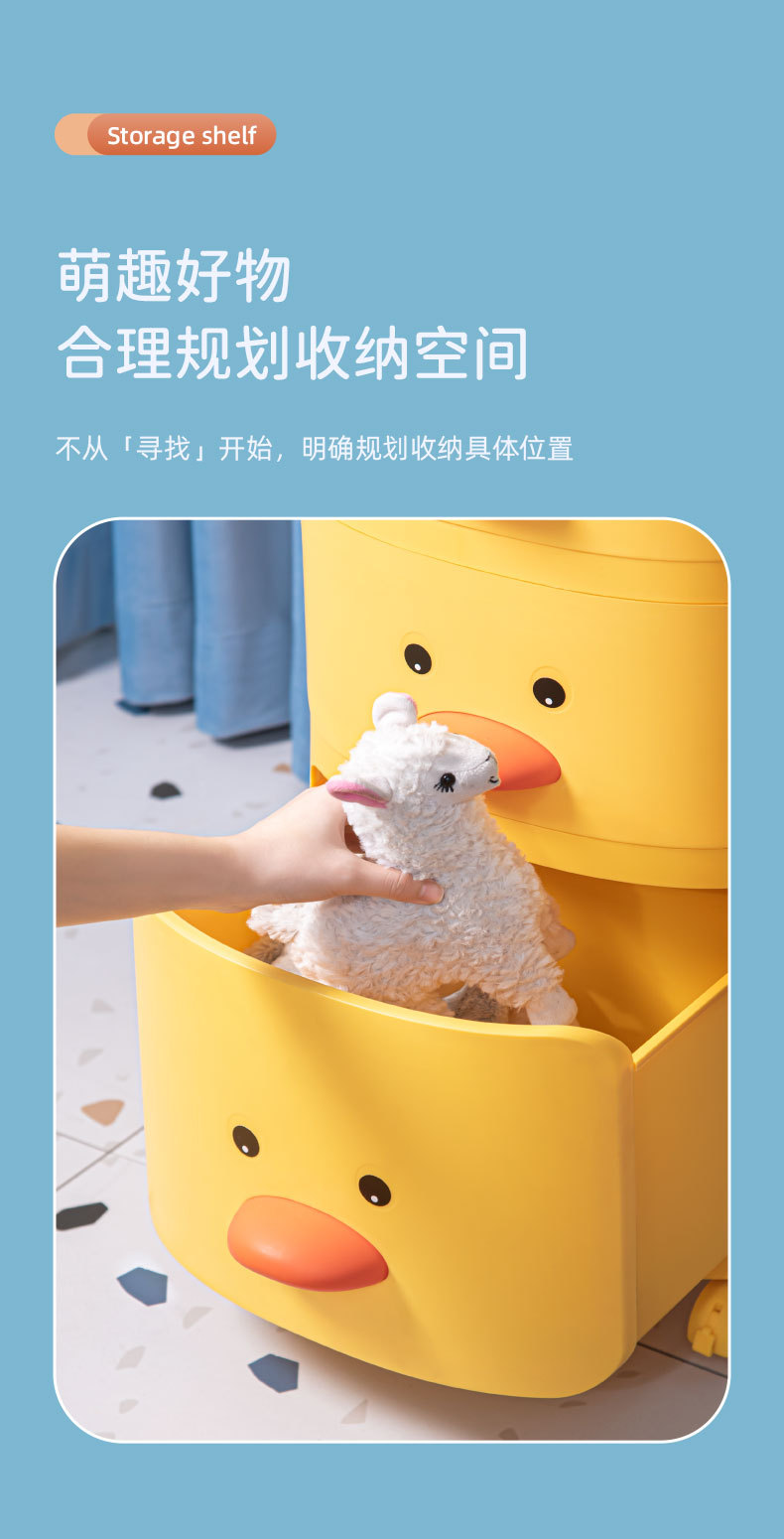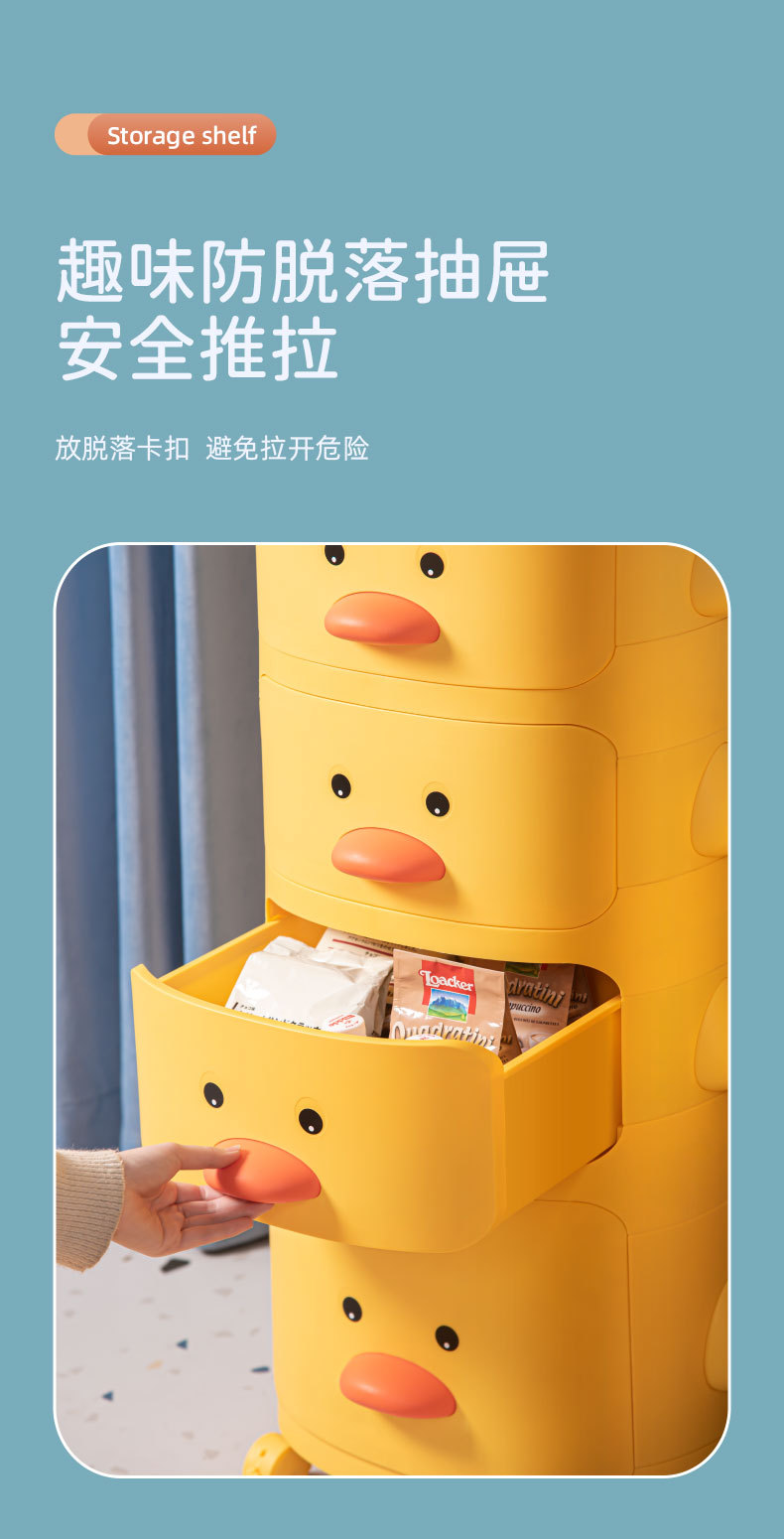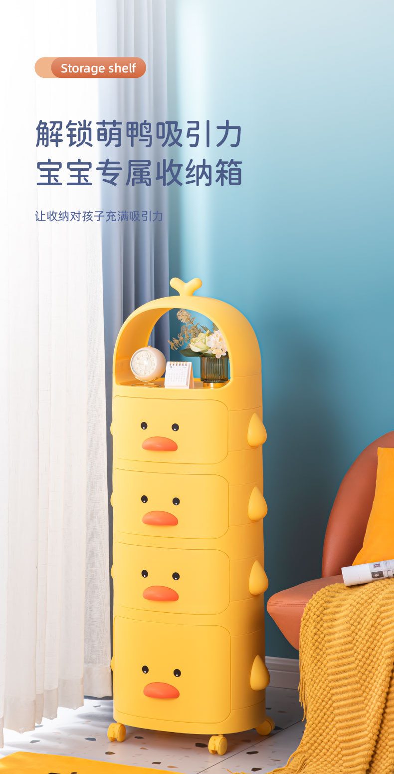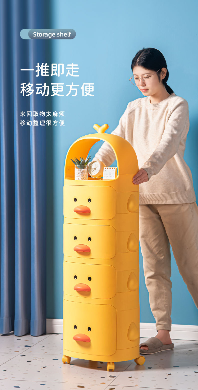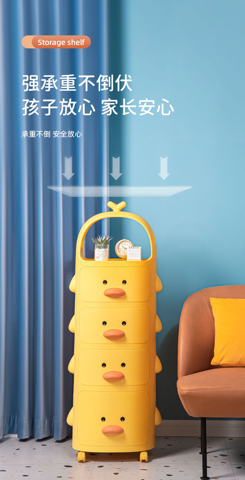 트롤리 보관 랙 노란색 오리 스낵 보관 캐비닛 다층 어린이 침실 침실 장난감 보관 랙 이동식