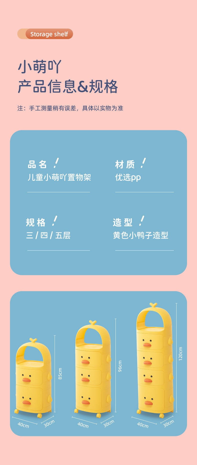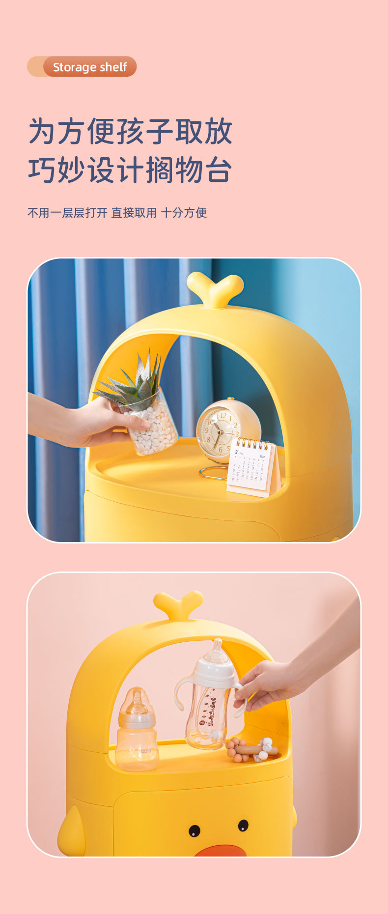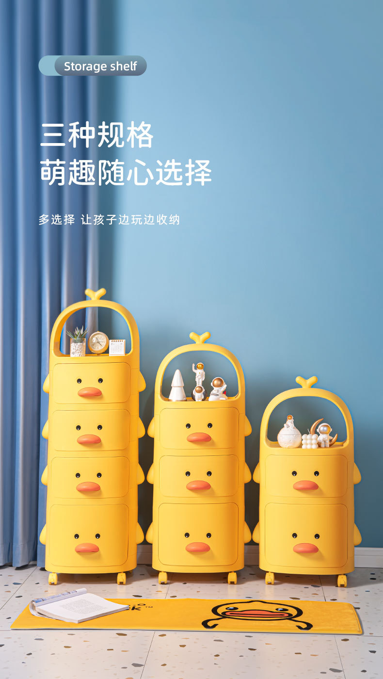 트롤리 보관 랙 노란색 오리 스낵 보관 캐비닛 다층 어린이 침실 침실 장난감 보관 랙 이동식스토어 가기