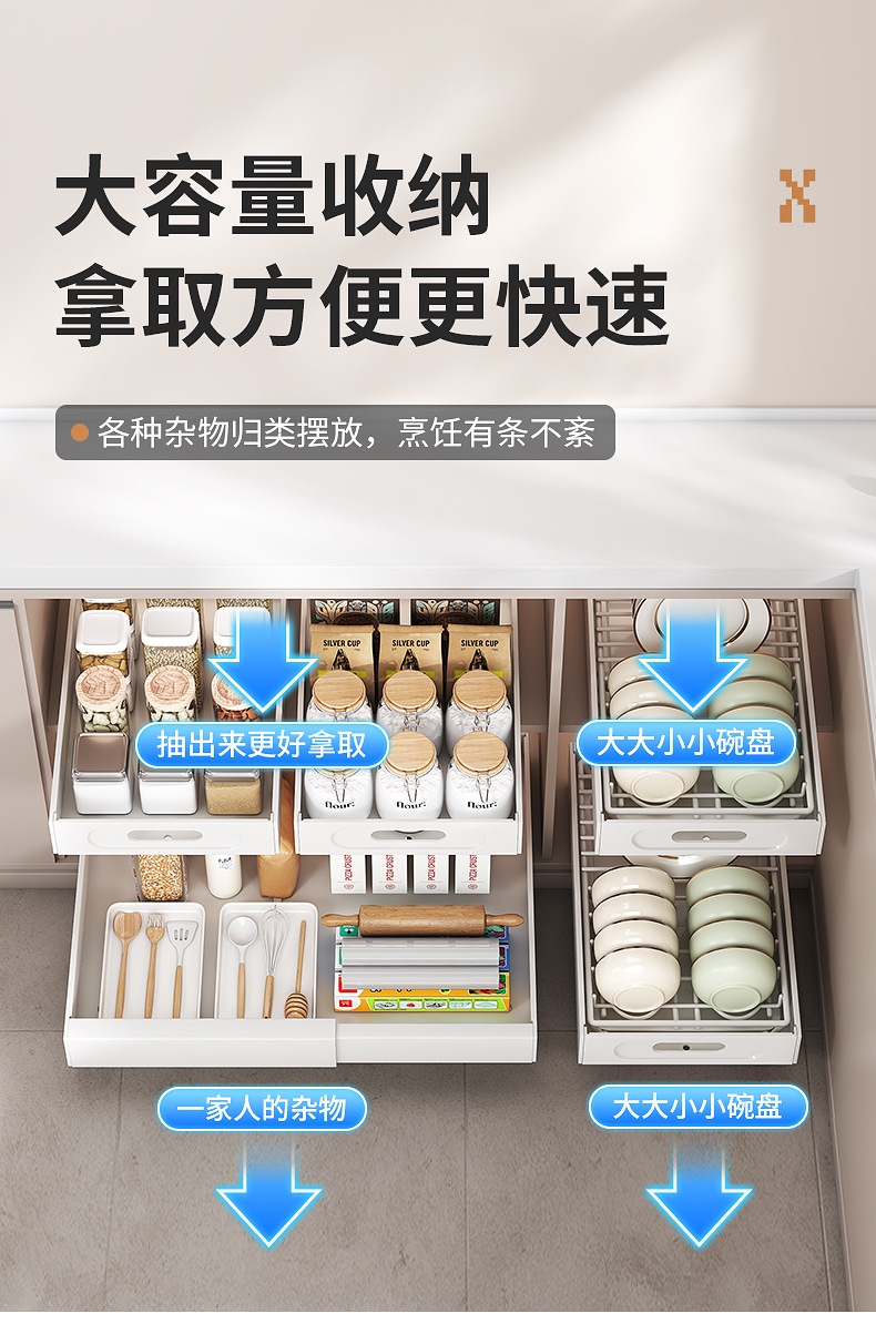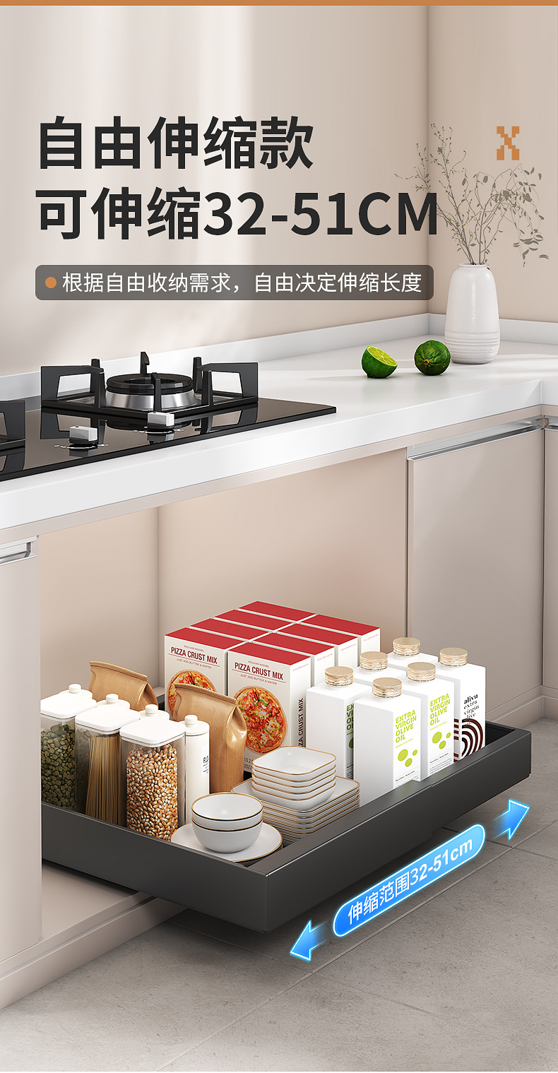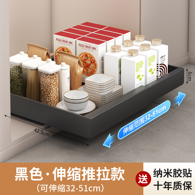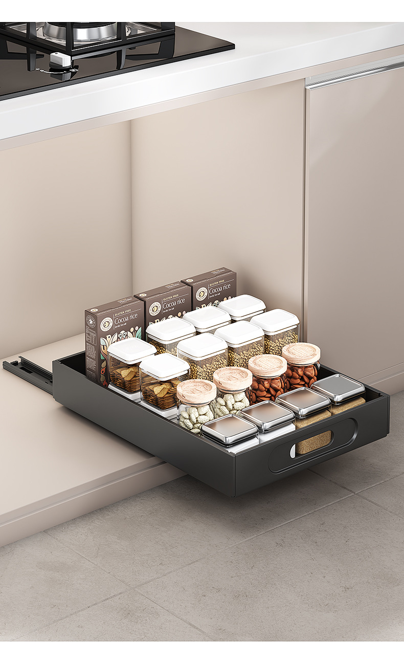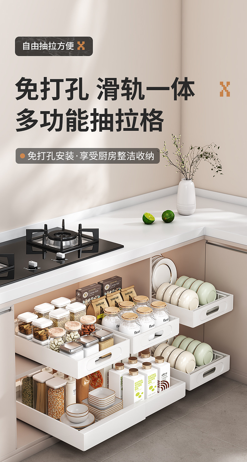 주방 수납 선반 캐비닛 슬라이딩 댐퍼 슬라이드 레일 수납장 무타공 잡화 조미료 그릇 접시 방진 보관