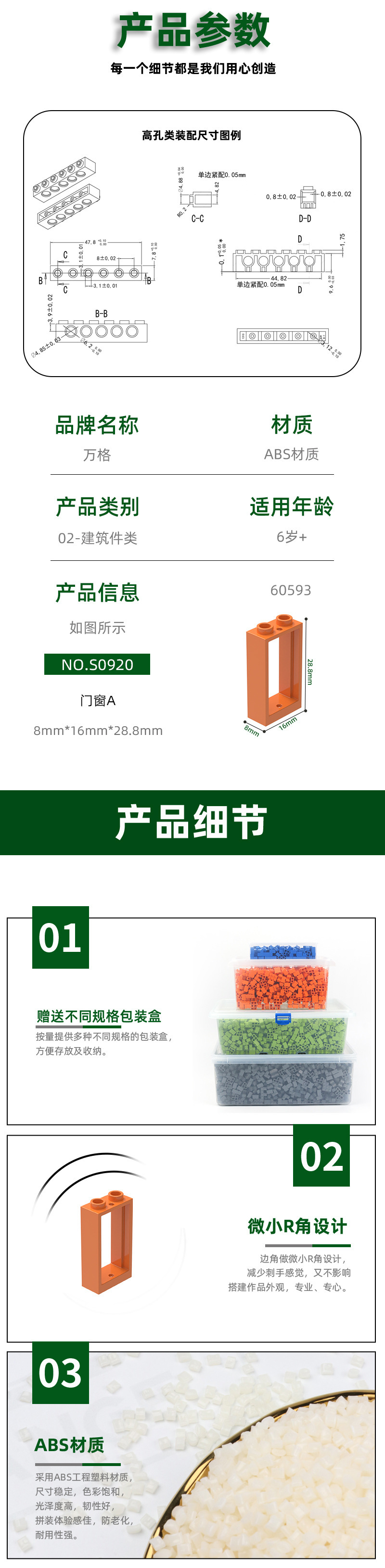 60593 개의 조립 된 부품 도어 및 창문과 호환되는 Wange diy 작은 입자 국내 빌딩 블록 과학 및 교육 장난감 국경 독점