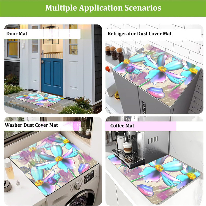 국경 간 규조류 진흙 세탁기 매트는 먼지 방지 매트 방진 인쇄 전자 레인지 냉장고 상단 매트를자를 수 있습니다스토어 가기