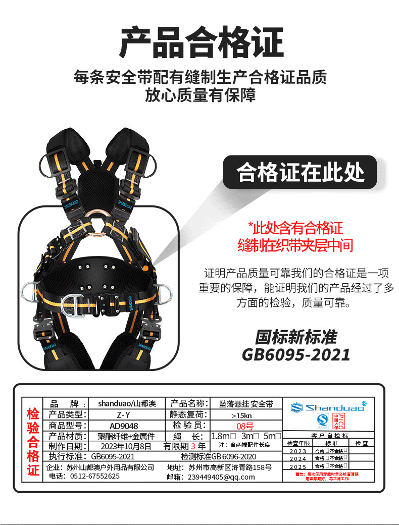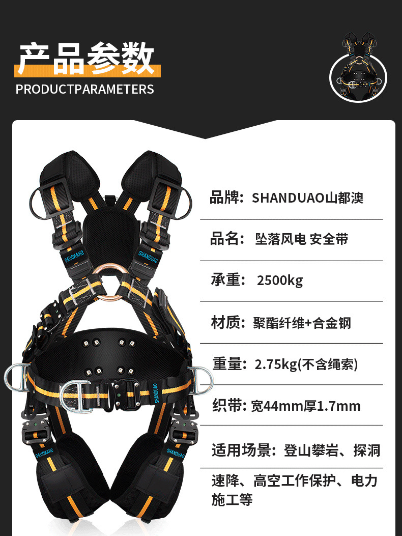 Shandu 호주 풍력 발전 전신 안전 벨트 공중 작업 전기 건설 낙하 방지 위치 안전 벨트 안전 로프스토어 가기
