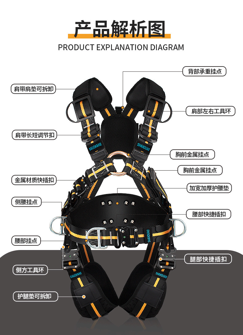 Shandu 호주 풍력 발전 전신 안전 벨트 공중 작업 전기 건설 낙하 방지 위치 안전 벨트 안전 로프