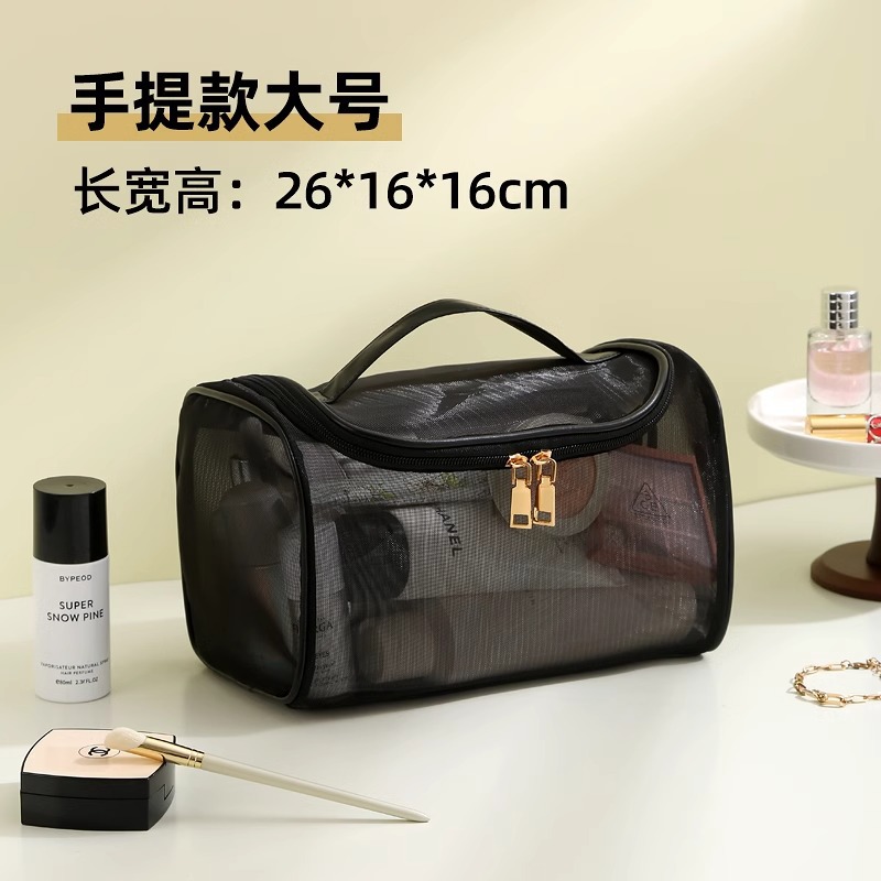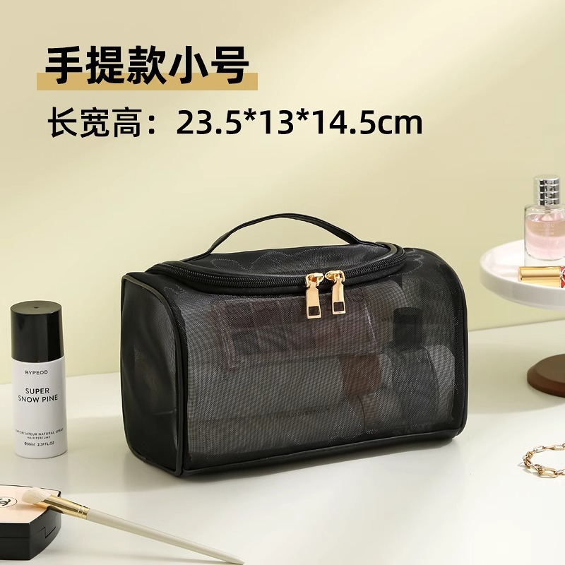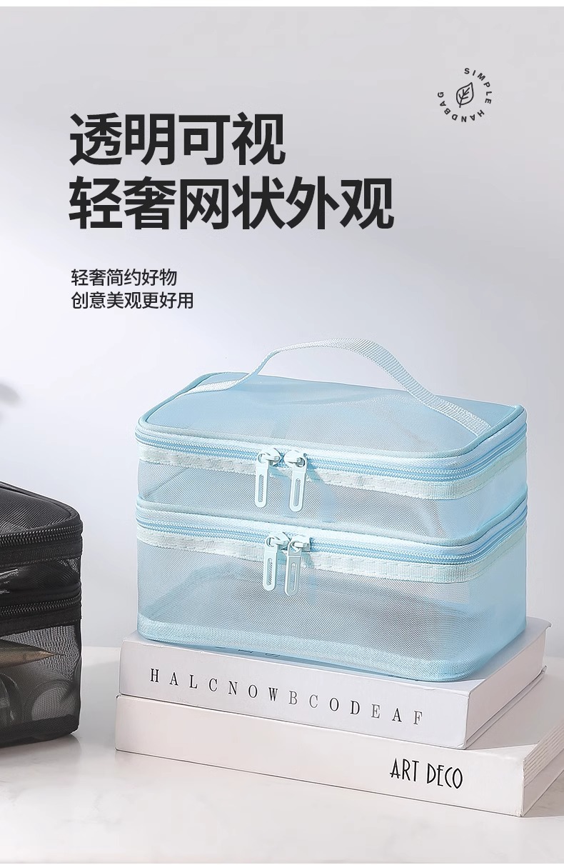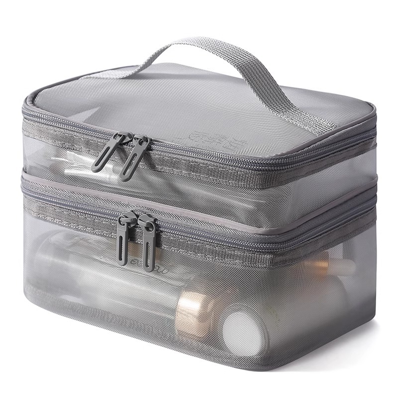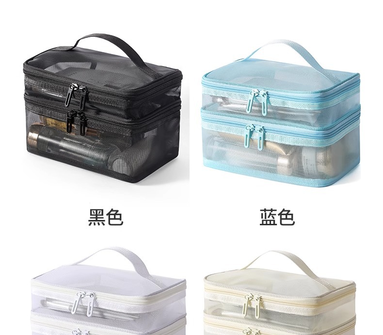 나일론 메쉬 더블 레이어 화장품 가방 여성의 대용량 휴대용 여행 화장품 세척 저장 가방 도매 인쇄 로고스토어 가기