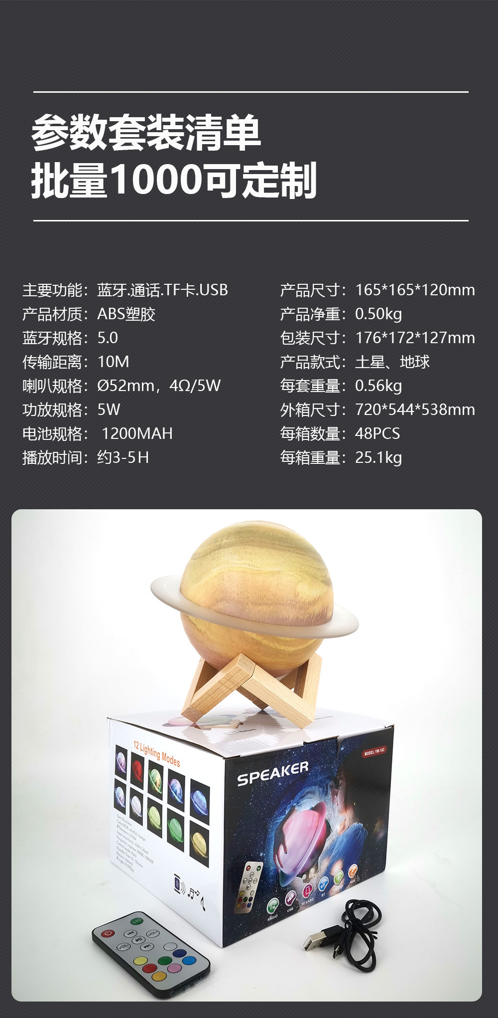 원격 제어 블루투스 사운드 분위기 램프 새로운 창조적 인 생일 선물 실용적인 졸업 달 램프 스피커 데스크탑 장식품