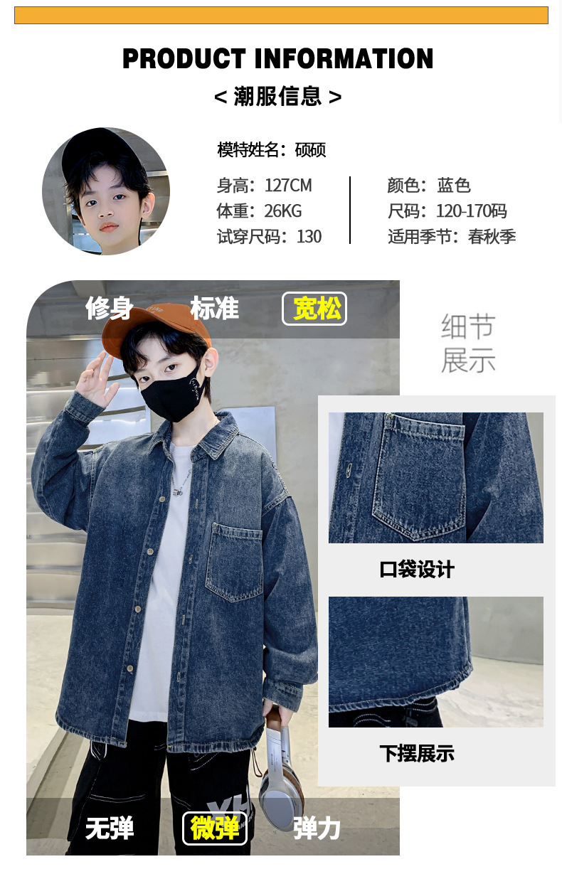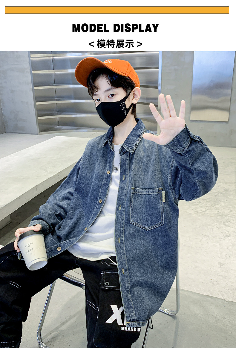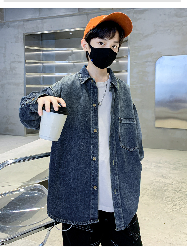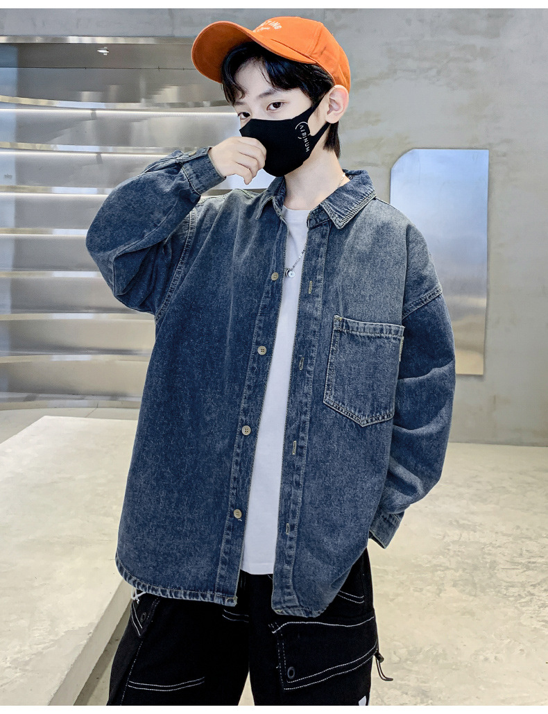 아동복 소년 봄 데님 셔츠 2025 새로운 봄, 가을 스타일 중형 및 대형 아동용 긴팔 봄 소년상의 유행스토어 가기