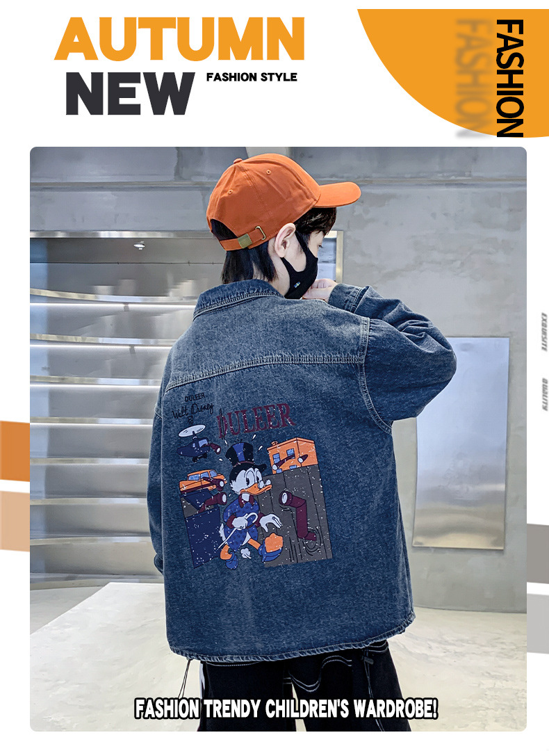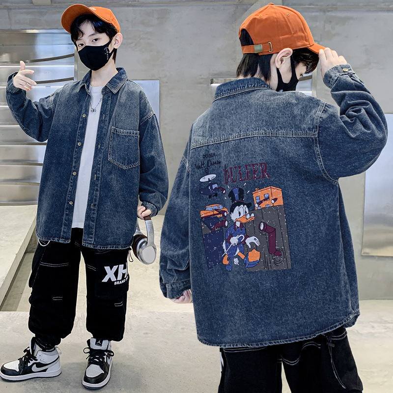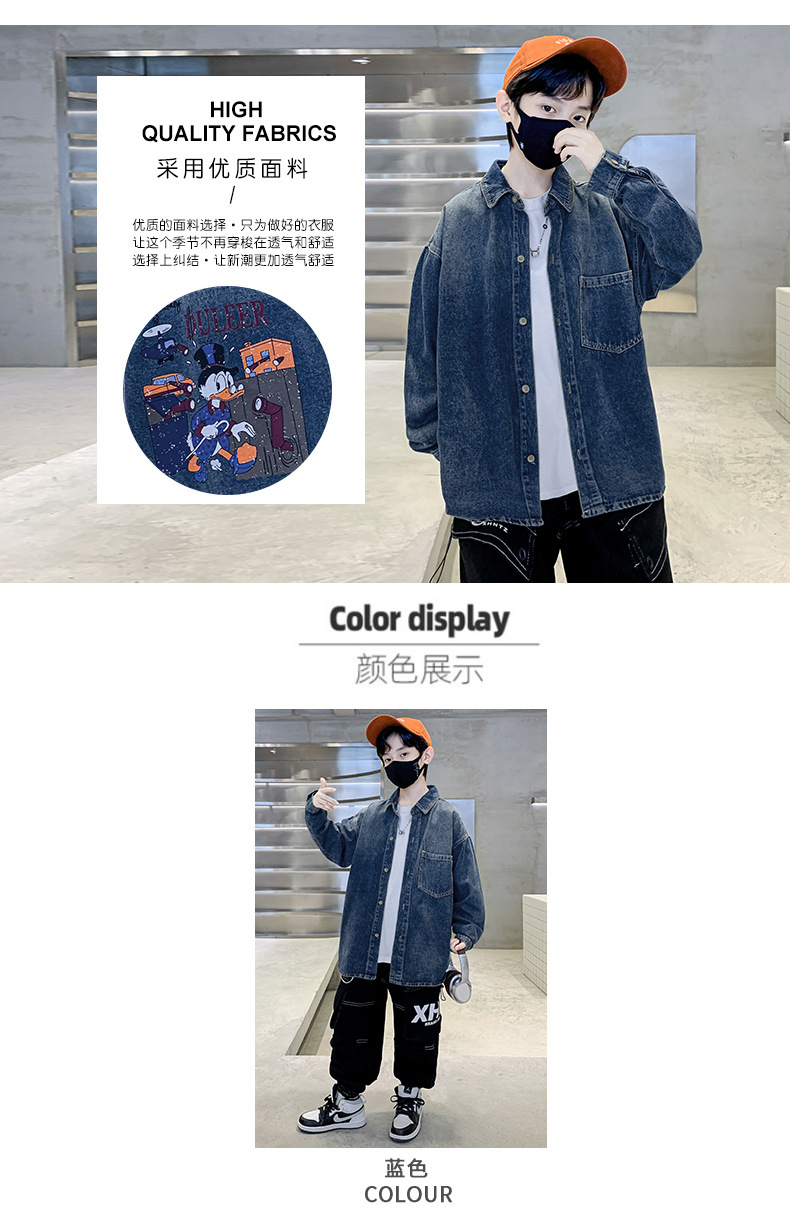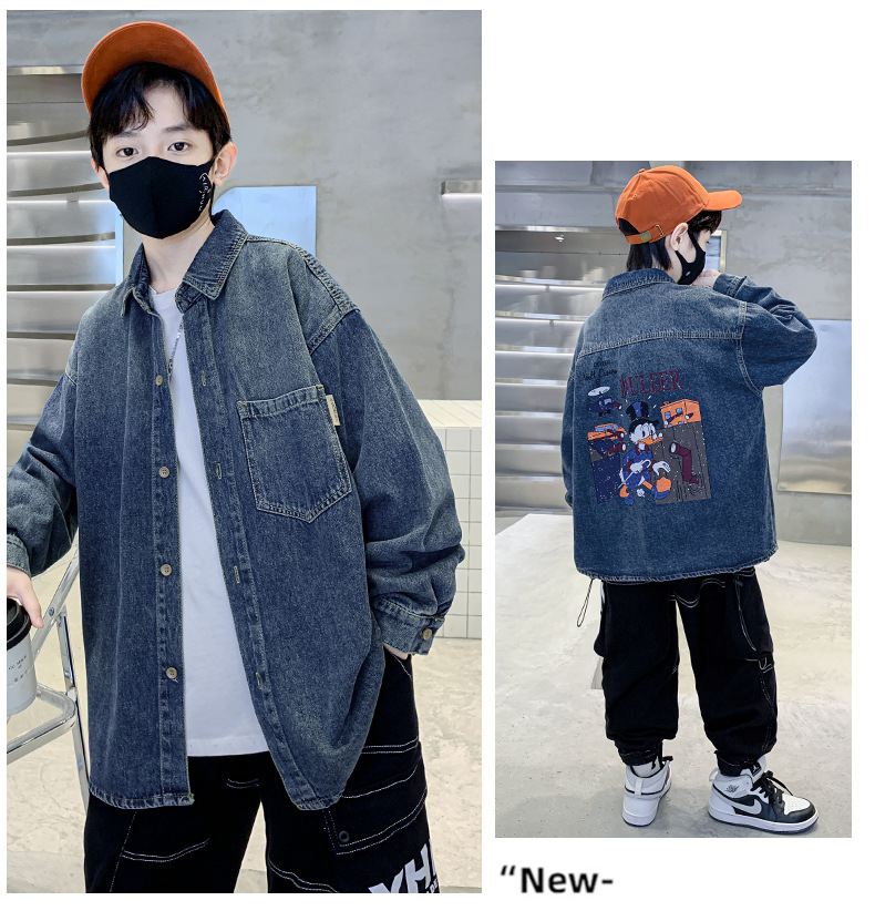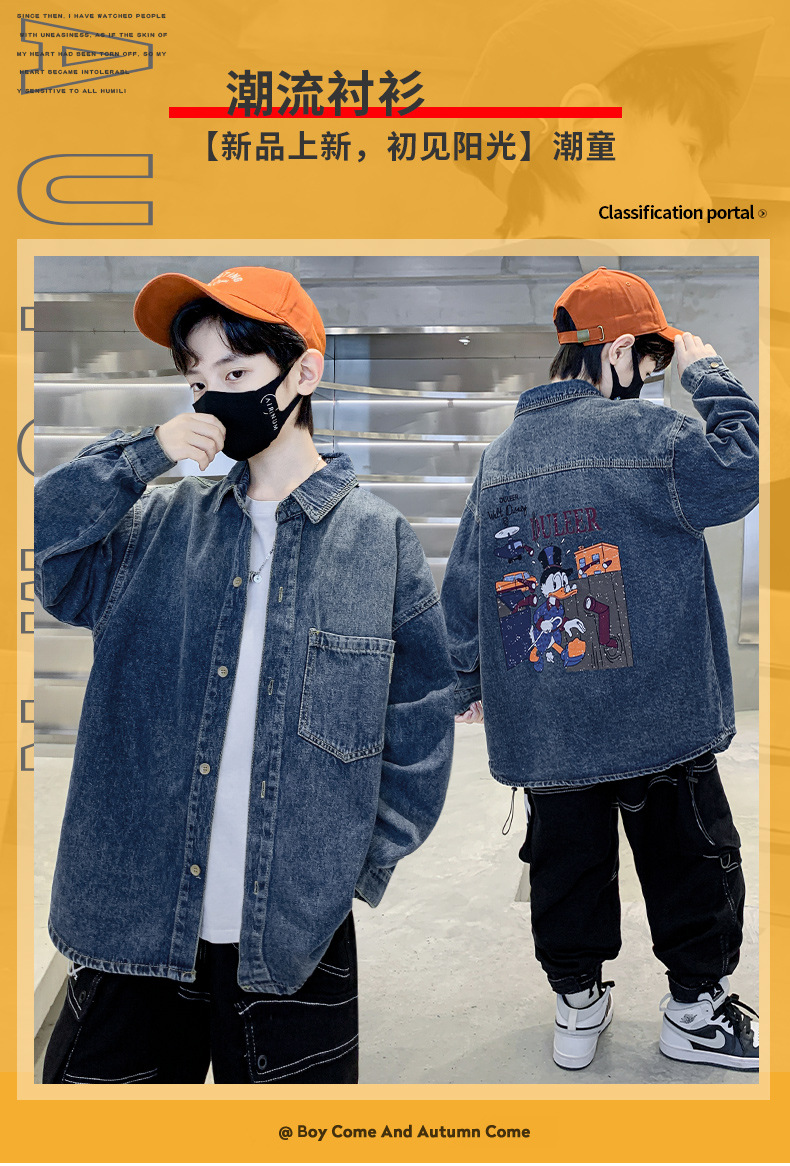아동복 소년 봄 데님 셔츠 2025 새로운 봄, 가을 스타일 중형 및 대형 아동용 긴팔 봄 소년상의 유행스토어 가기