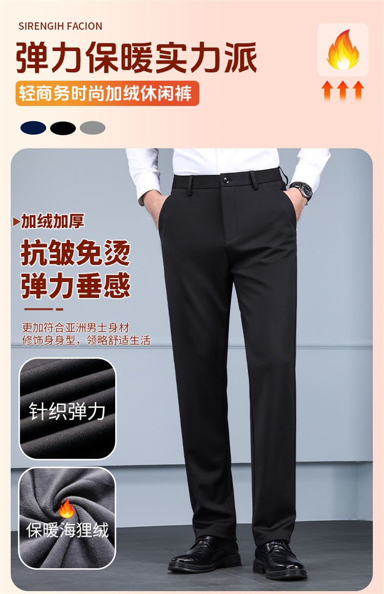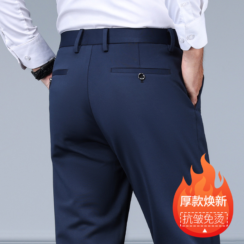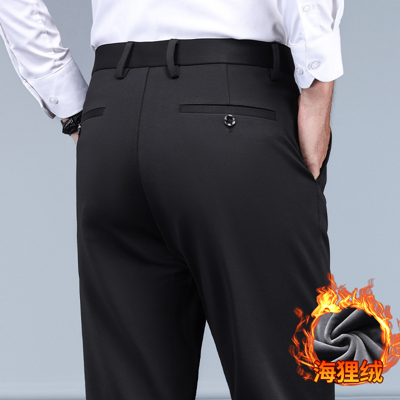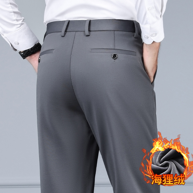 남성용 2025 가을 겨울 스트레이트 루즈핏 비즈니스 정장 바지 남성용 기모 두꺼운 정장 바지 경량 비즈니스스토어 가기