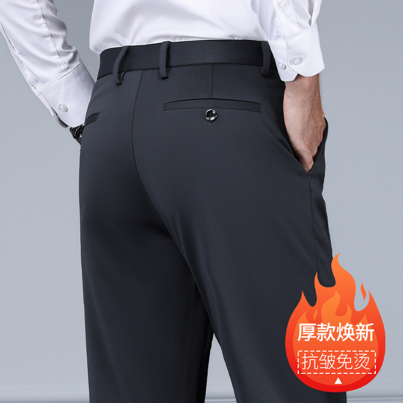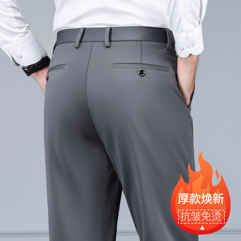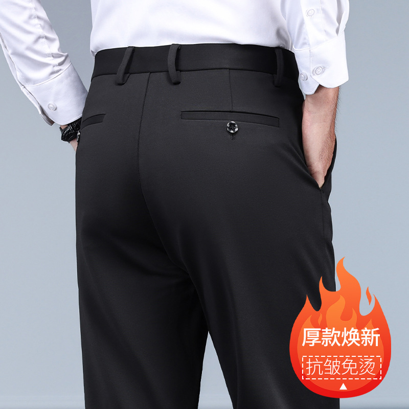 남성용 2025 가을 겨울 스트레이트 루즈핏 비즈니스 정장 바지 남성용 기모 두꺼운 정장 바지 경량 비즈니스