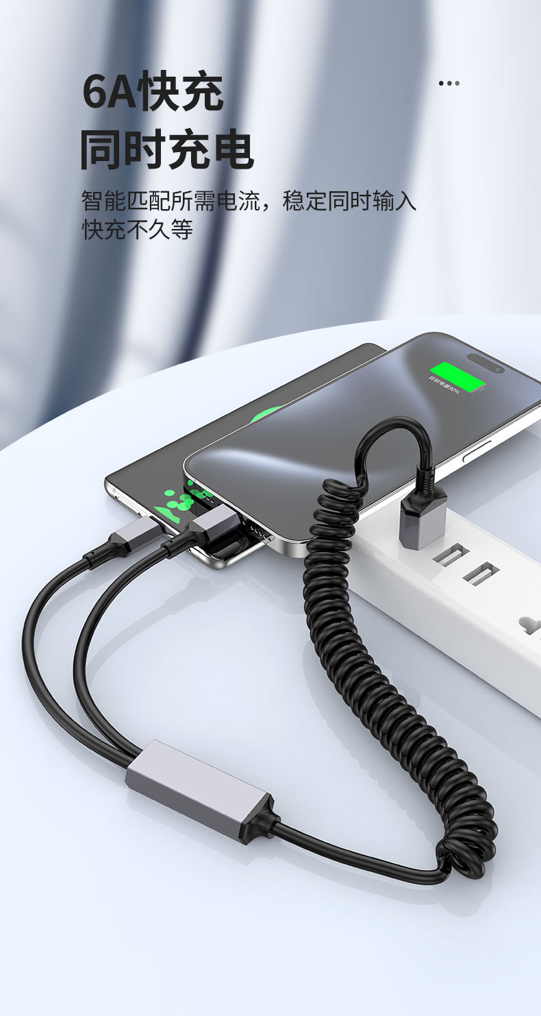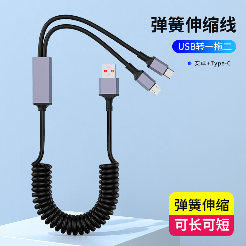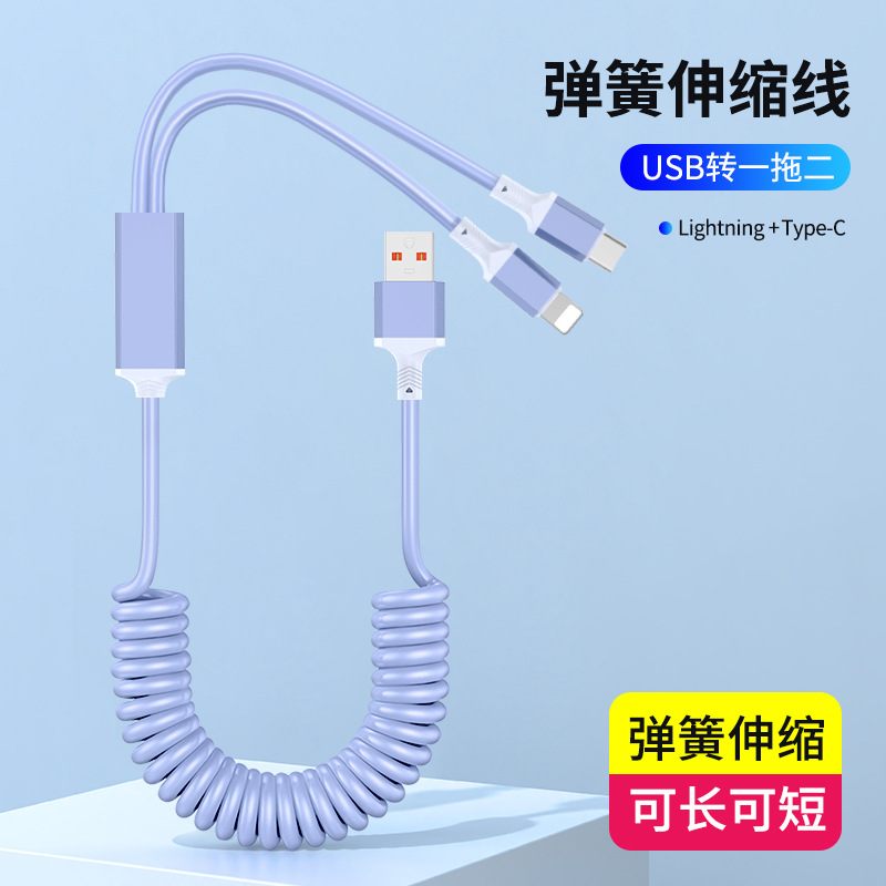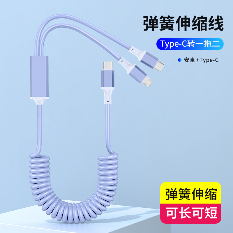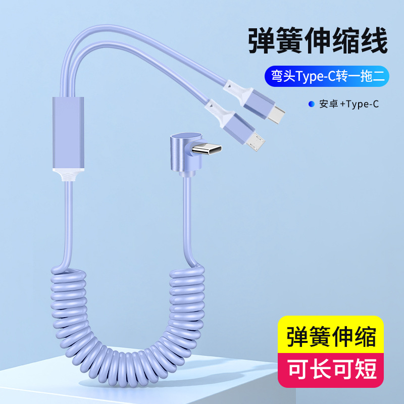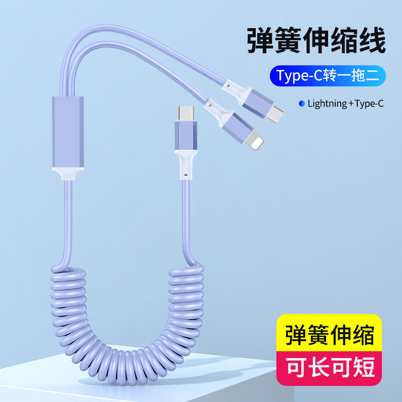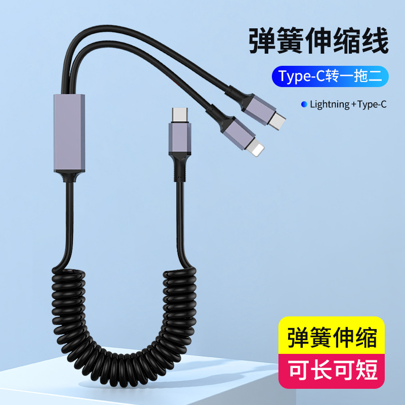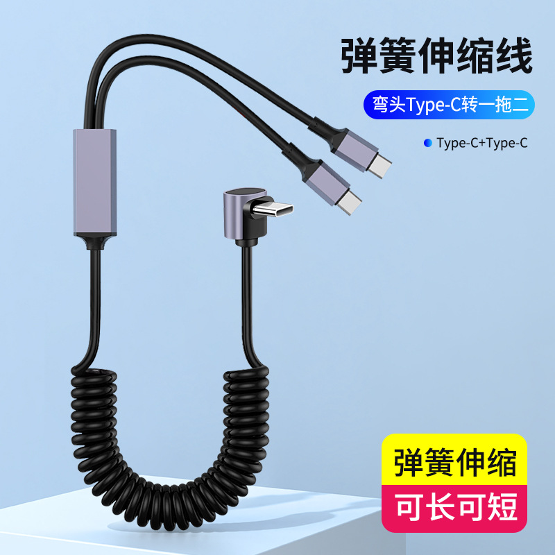 1 대 2 팔꿈치 스프링 데이터 라인 차량 장착 텔레스코픽 충전 라인 PD 2 대 1 탄성 스트레칭 라인 100W 고속 충전