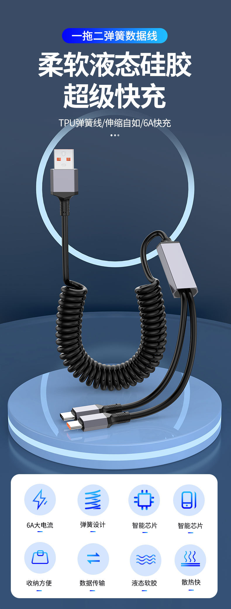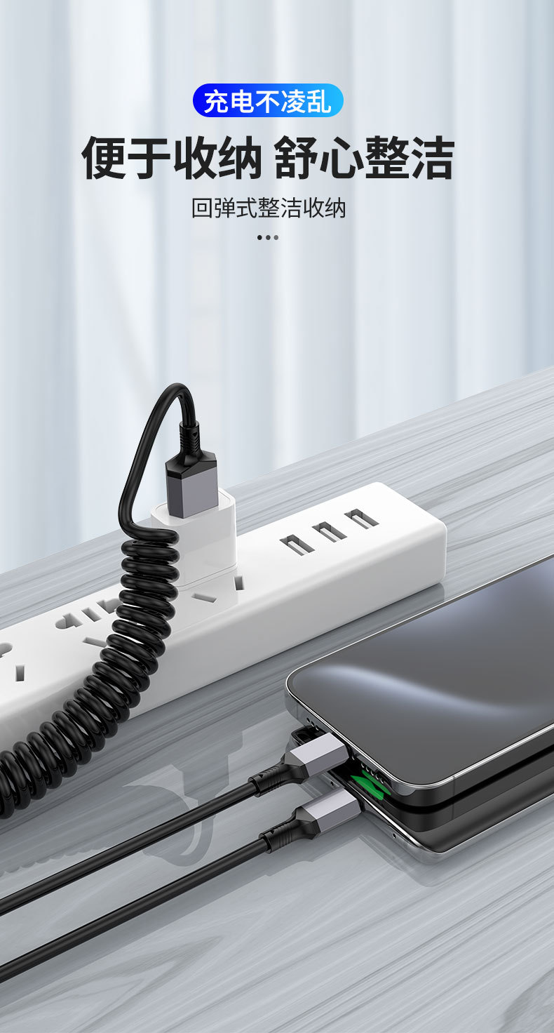 1 대 2 팔꿈치 스프링 데이터 라인 차량 장착 텔레스코픽 충전 라인 PD 2 대 1 탄성 스트레칭 라인 100W 고속 충전스토어 가기