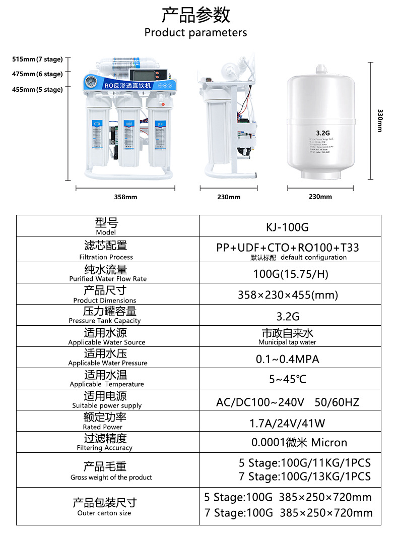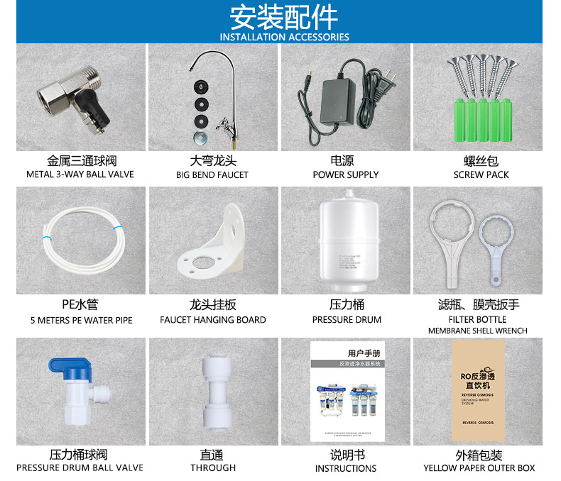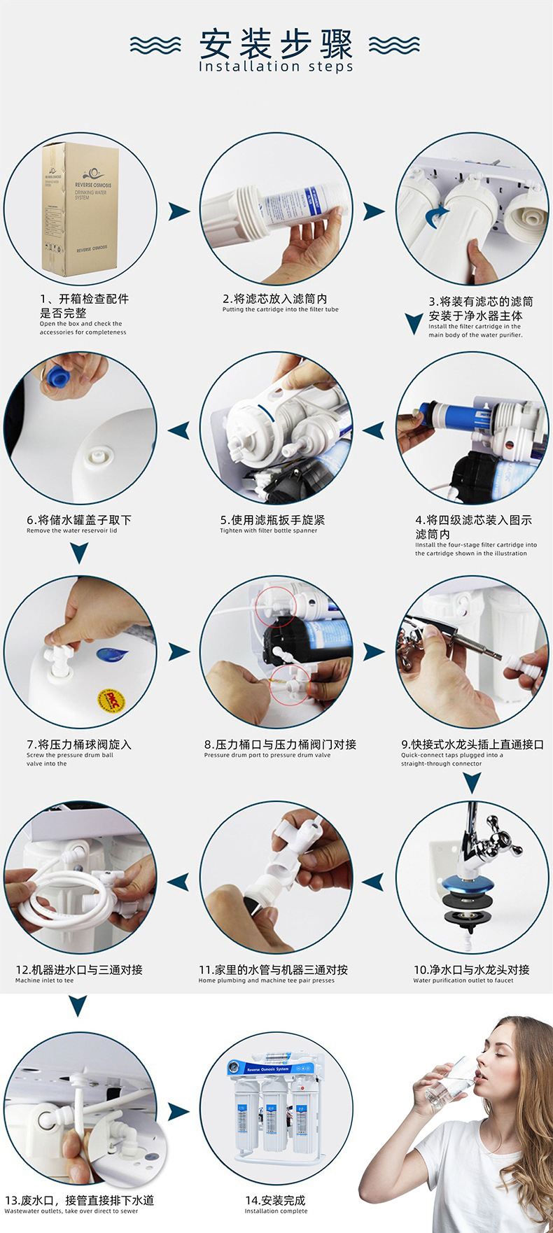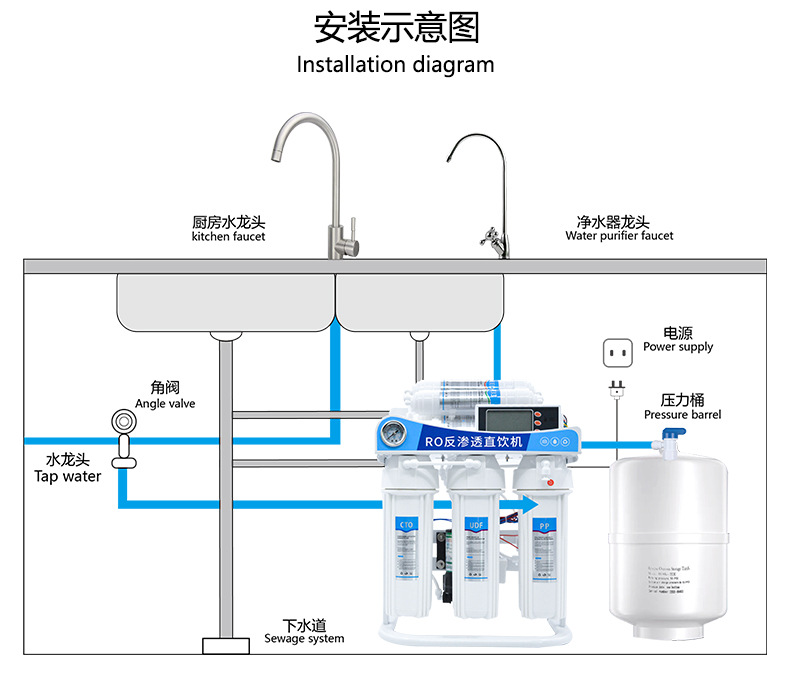 정수기 가정용 주방형 직수형 정수기 프레임 포함 RO 역삼투 정수기 대외 무역 영문 버전