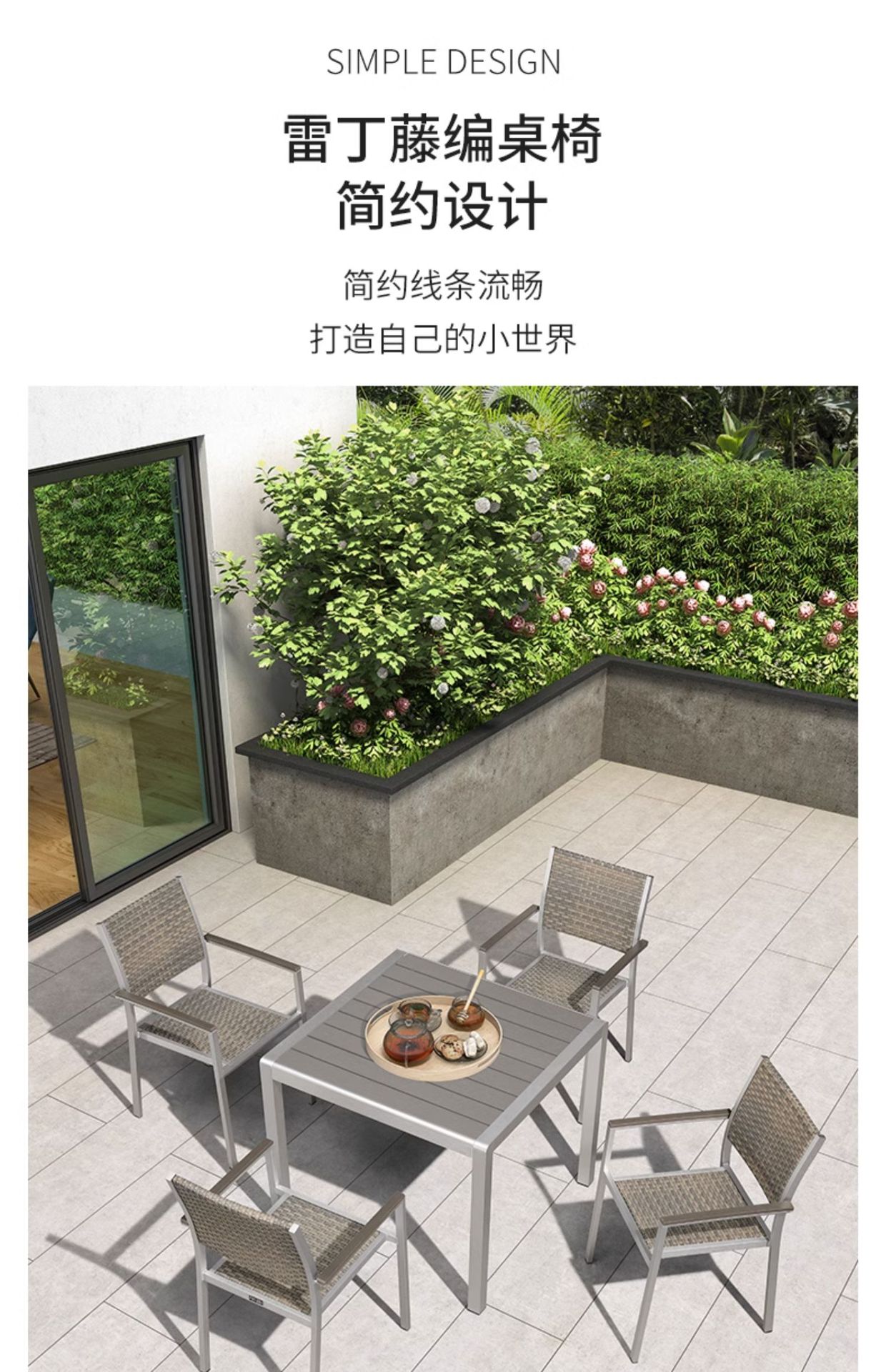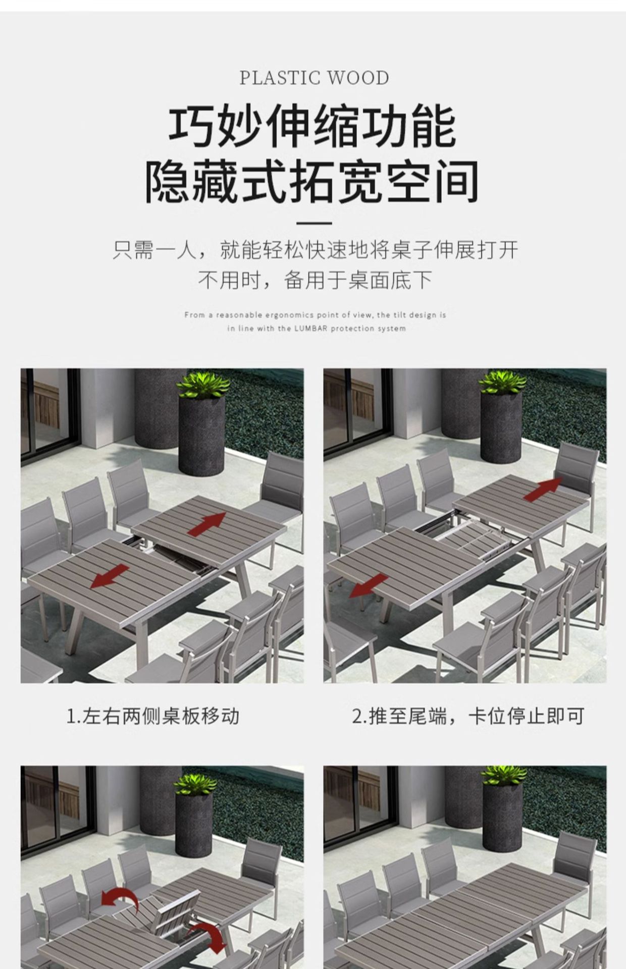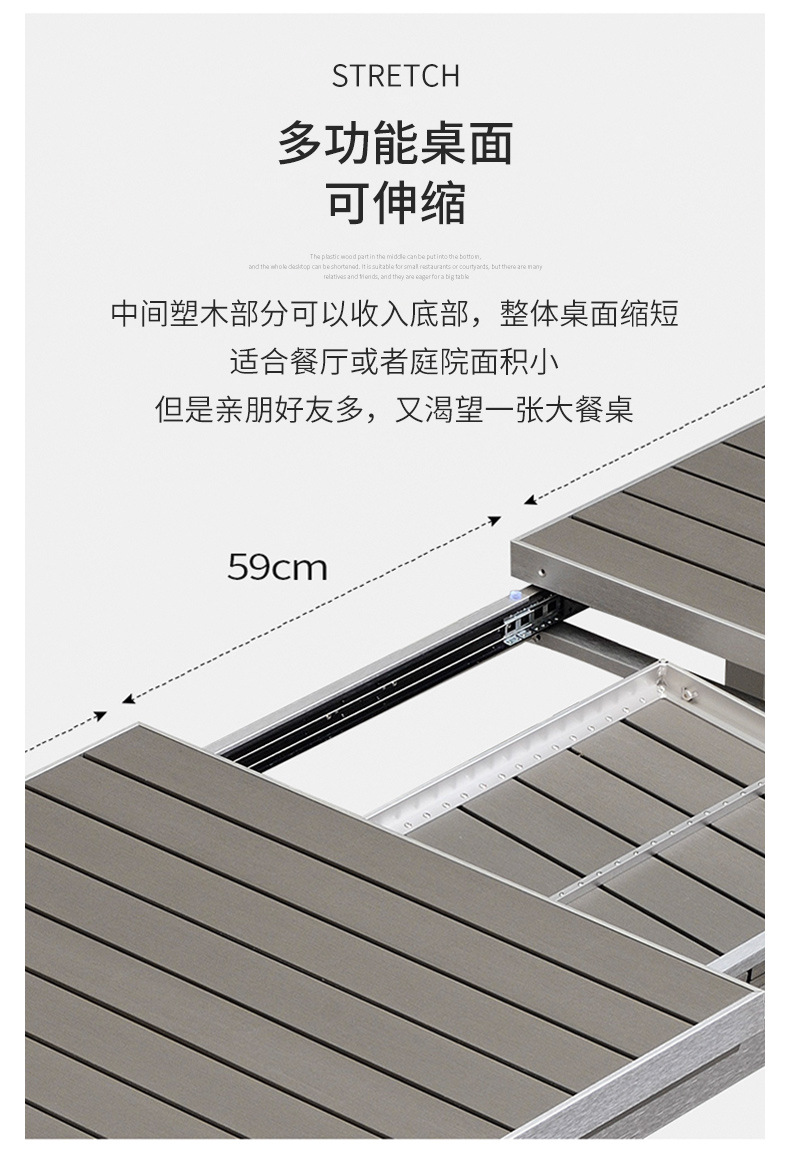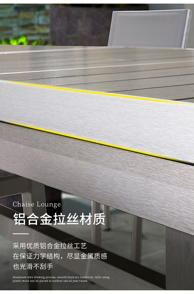 빌라 정원 플라스틱 목재 식탁 및 의자 야외 테라스 야외 식탁 발코니 레저 테이블 및 의자 정원 확장형 테이블