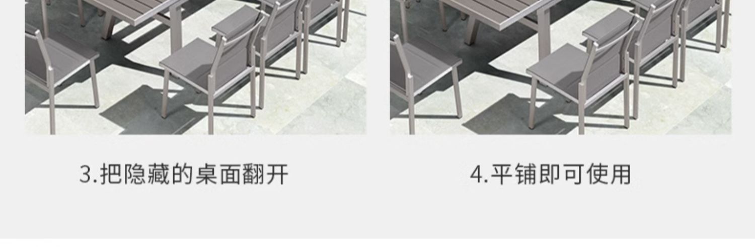 빌라 정원 플라스틱 목재 식탁 및 의자 야외 테라스 야외 식탁 발코니 레저 테이블 및 의자 정원 확장형 테이블스토어 가기
