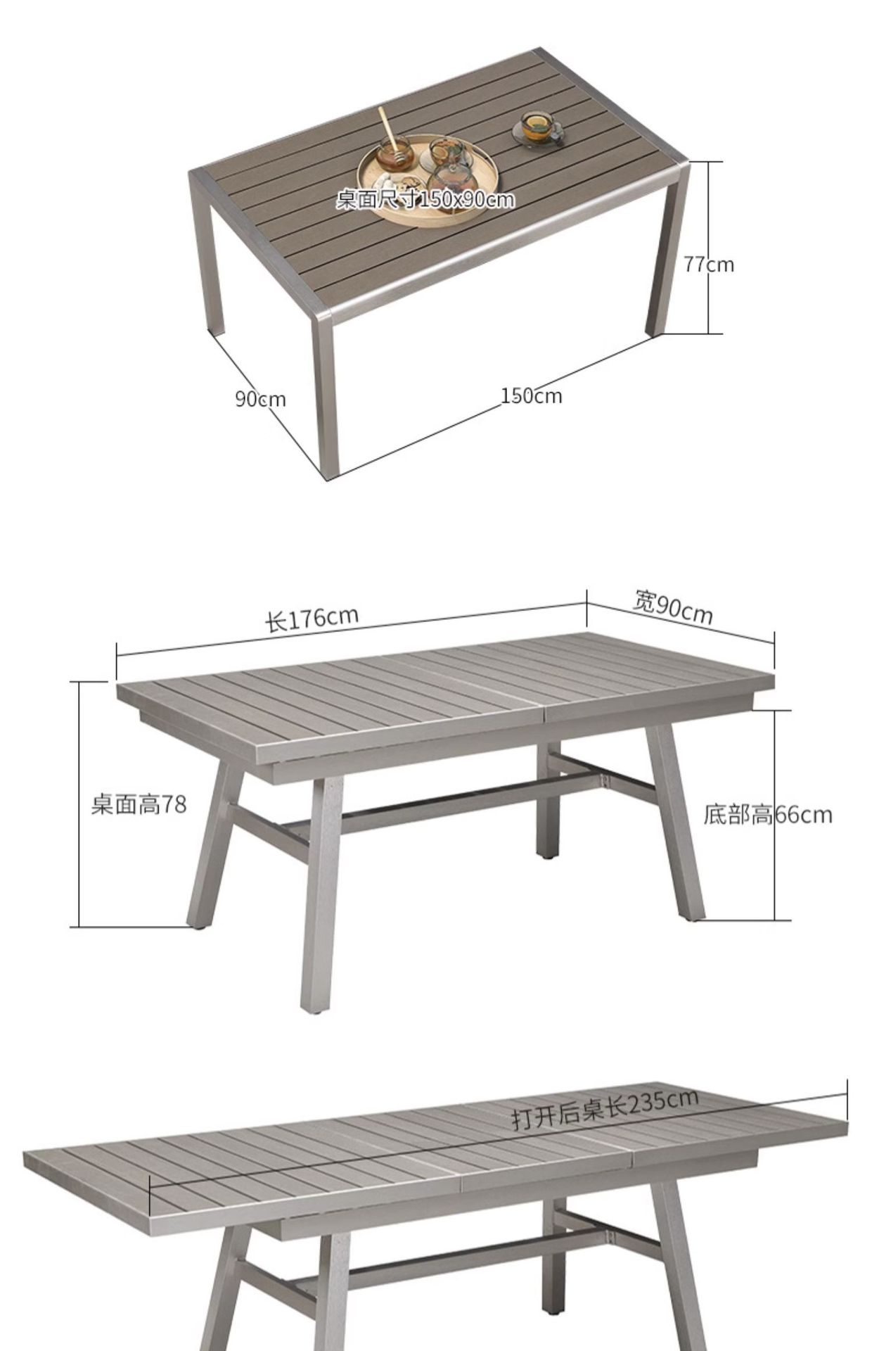 • 176/235x90 플라스틱 목재 텔레스코픽 롱 테이블