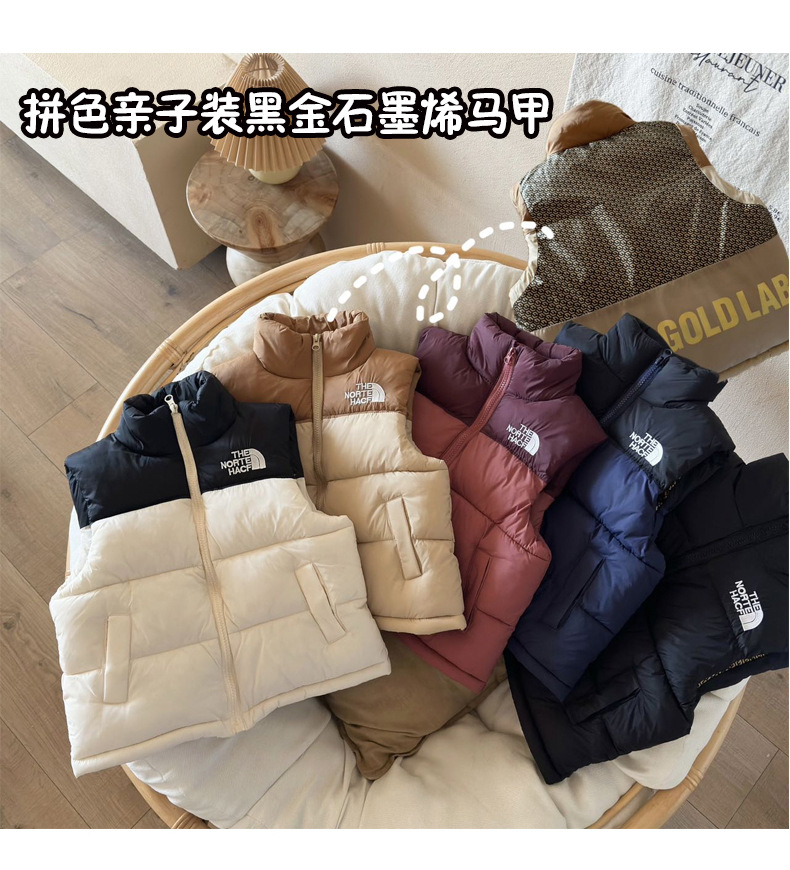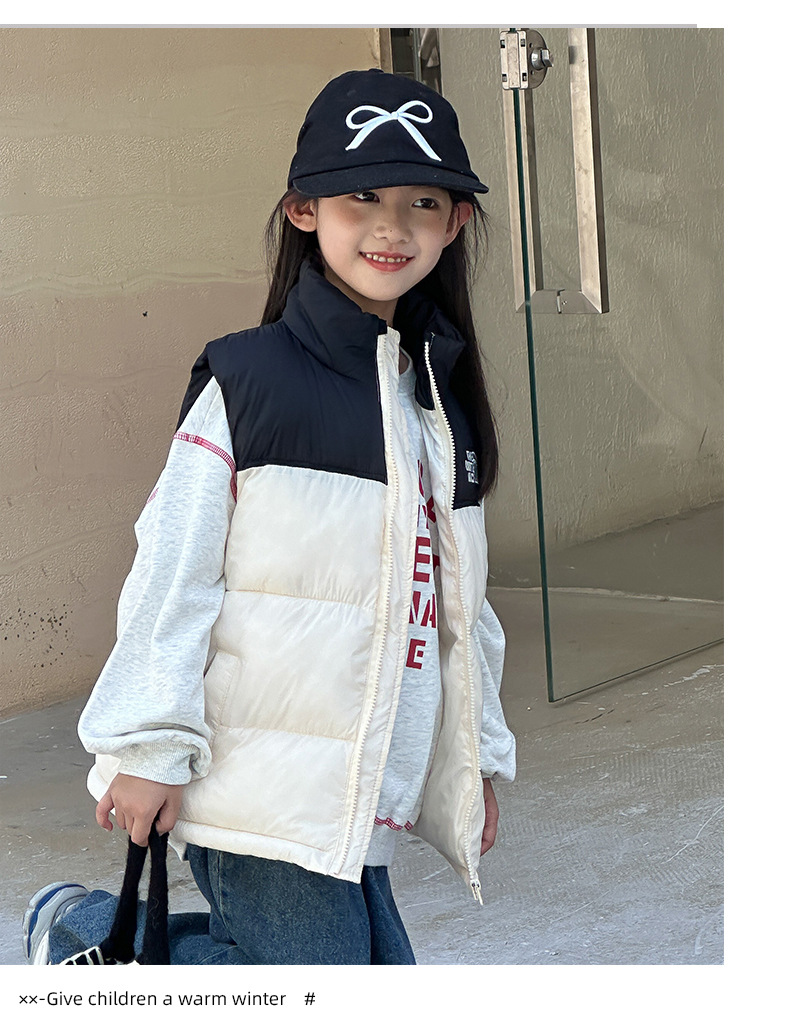2025 남녀공용 아동용 다운 면조끼, 중대형 아동용 스탠드업 칼라 스플라이싱 아동복 겨울 조끼 아우터 Douyin Live