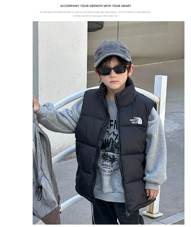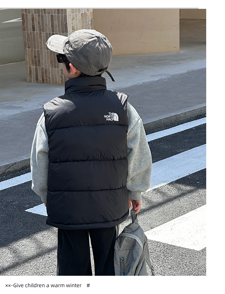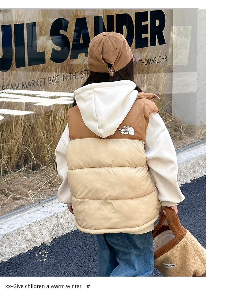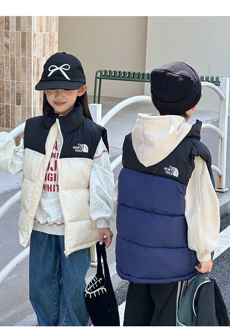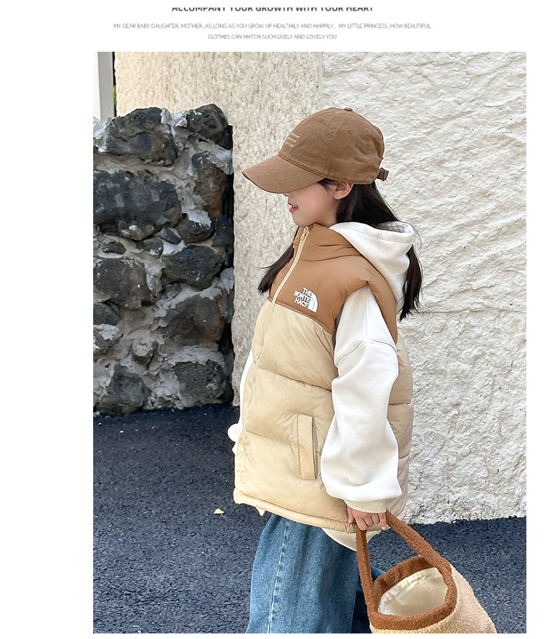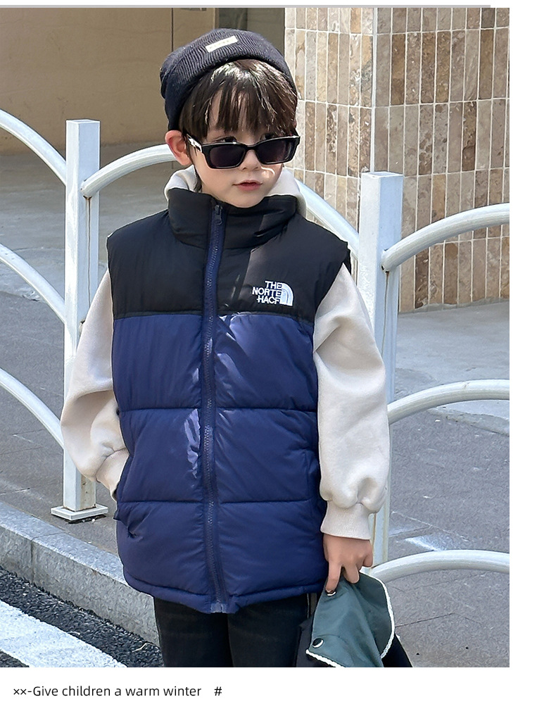 2025 남녀공용 아동용 다운 면조끼, 중대형 아동용 스탠드업 칼라 스플라이싱 아동복 겨울 조끼 아우터 Douyin Live스토어 가기