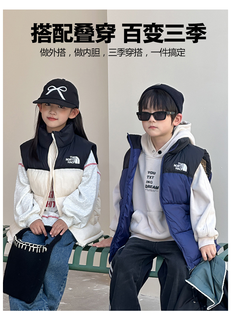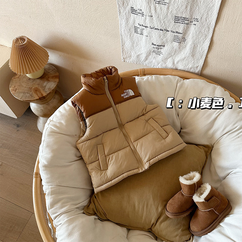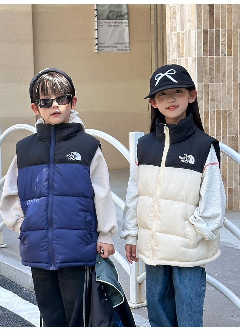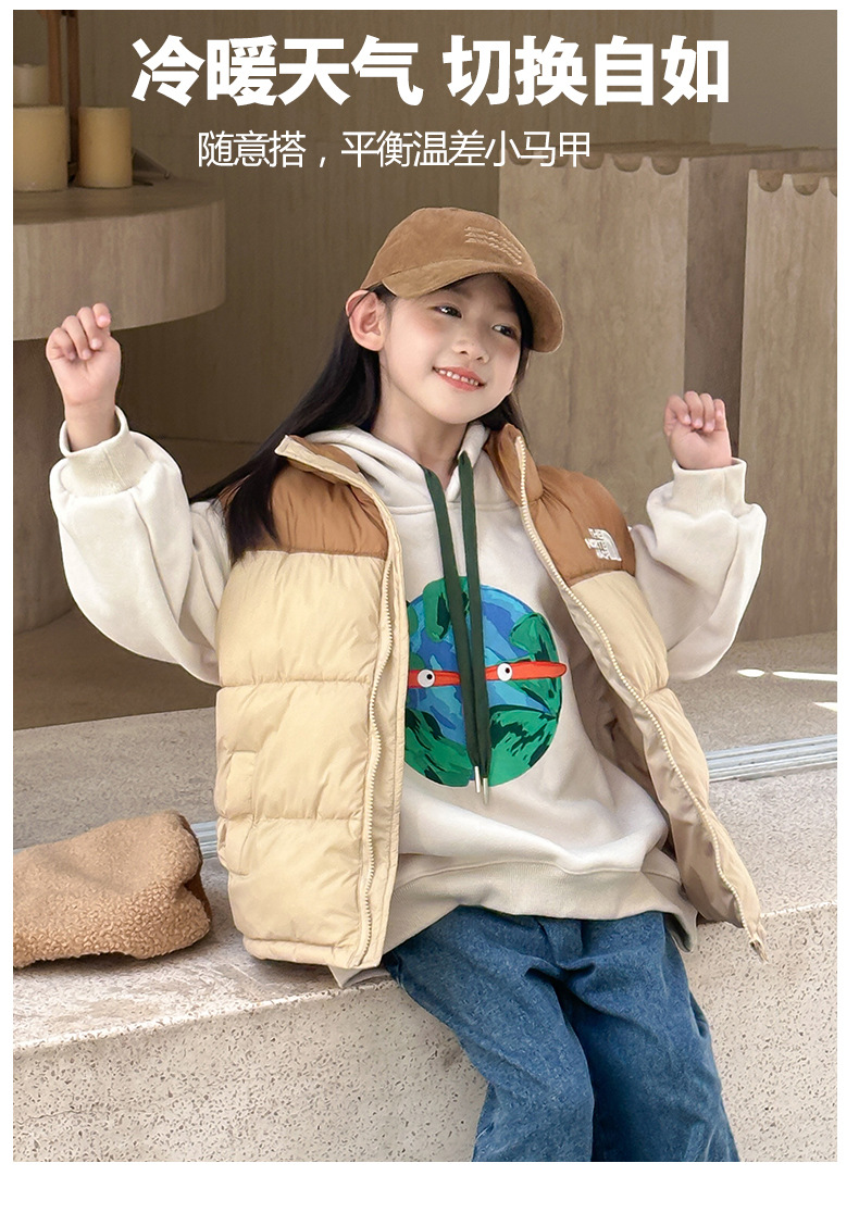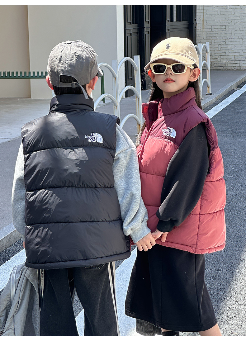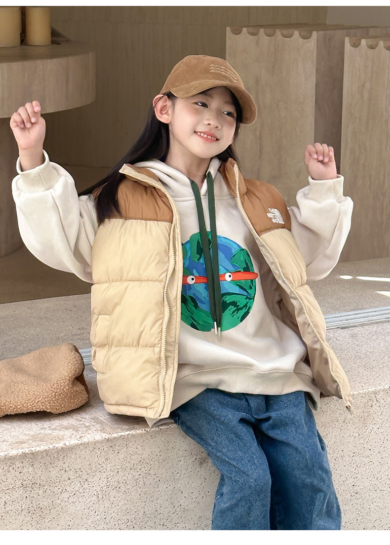 2025 남녀공용 아동용 다운 면조끼, 중대형 아동용 스탠드업 칼라 스플라이싱 아동복 겨울 조끼 아우터 Douyin Live스토어 가기