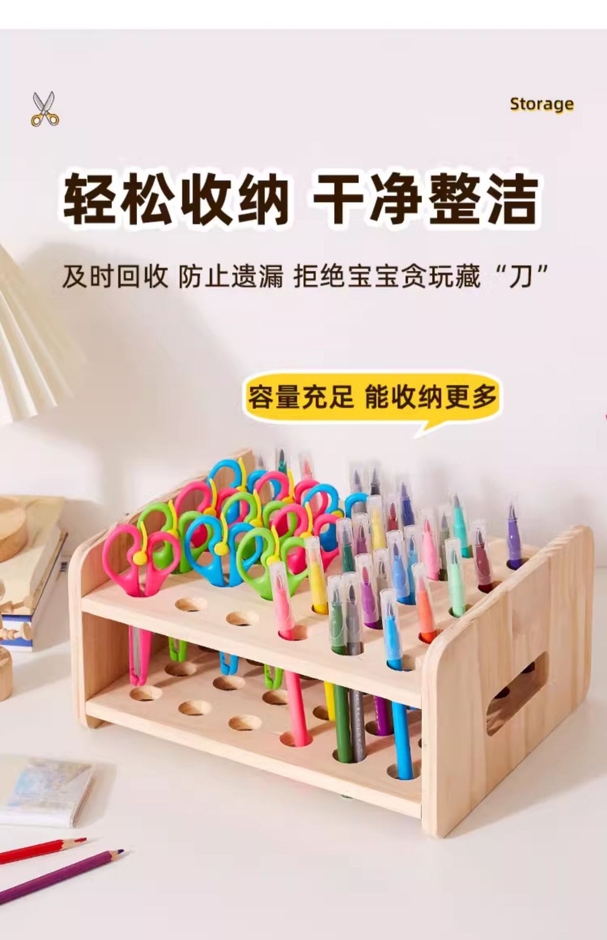재고 나무 가위 연필 저장 랙 유치원 예술 영역 소재 가위 랙 어린이 데스크탑 마무리 랙