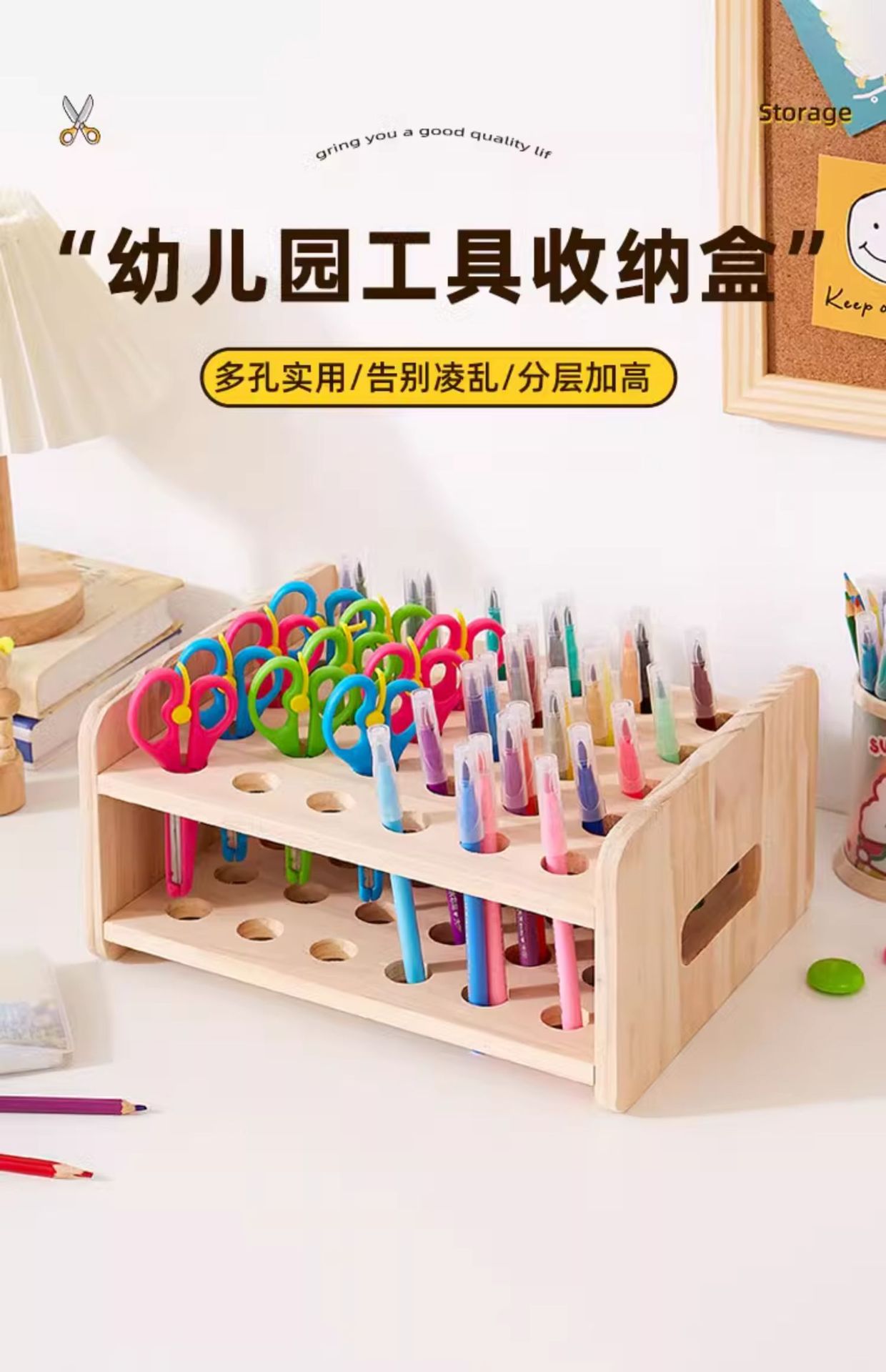 재고 나무 가위 연필 저장 랙 유치원 예술 영역 소재 가위 랙 어린이 데스크탑 마무리 랙스토어 가기