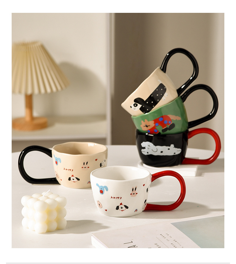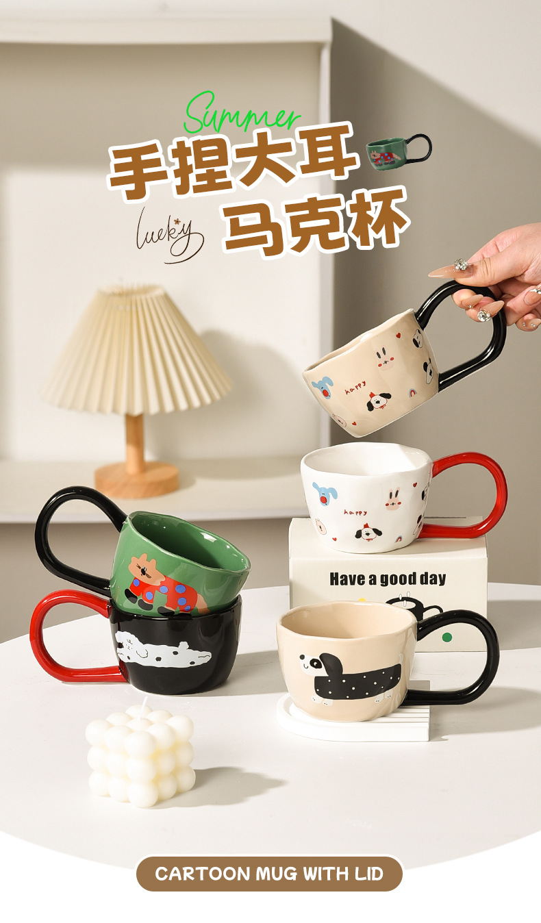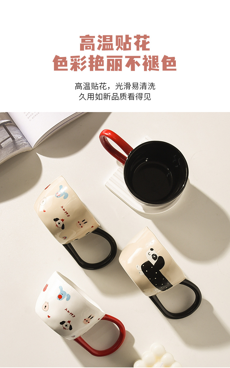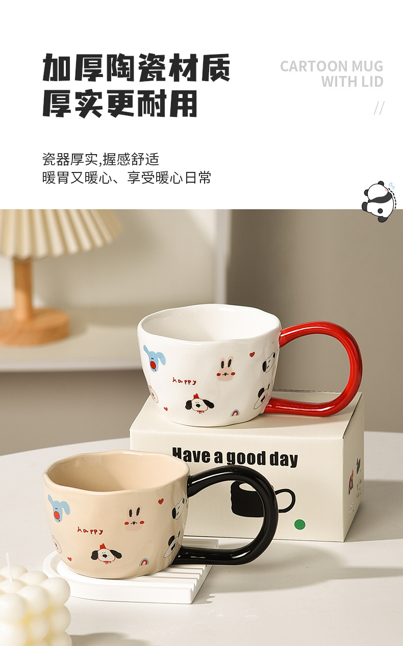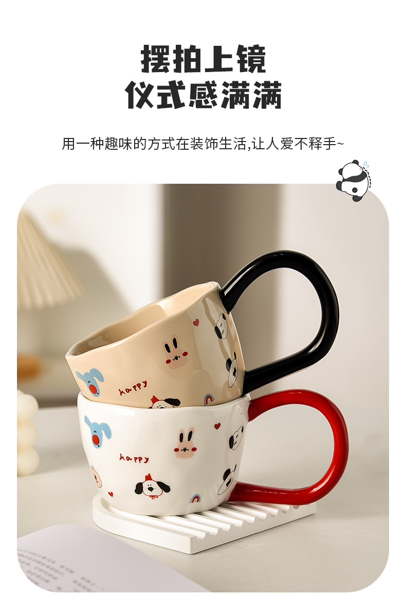창조적 인 색상 대비 큰 귀 컵 가정용 세라믹 머그잔 높은 가치 컵 만화 강아지 세라믹 컵 커플 물 컵