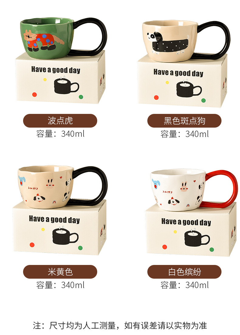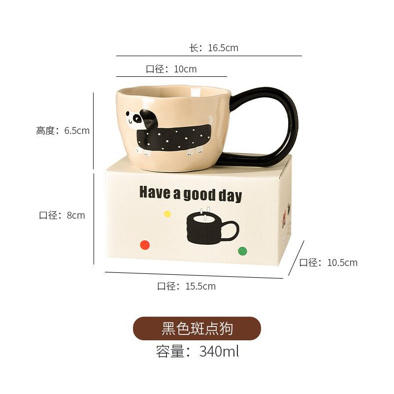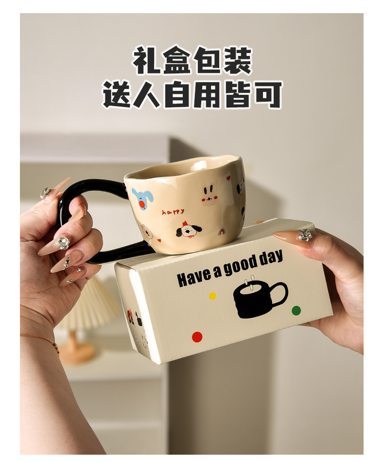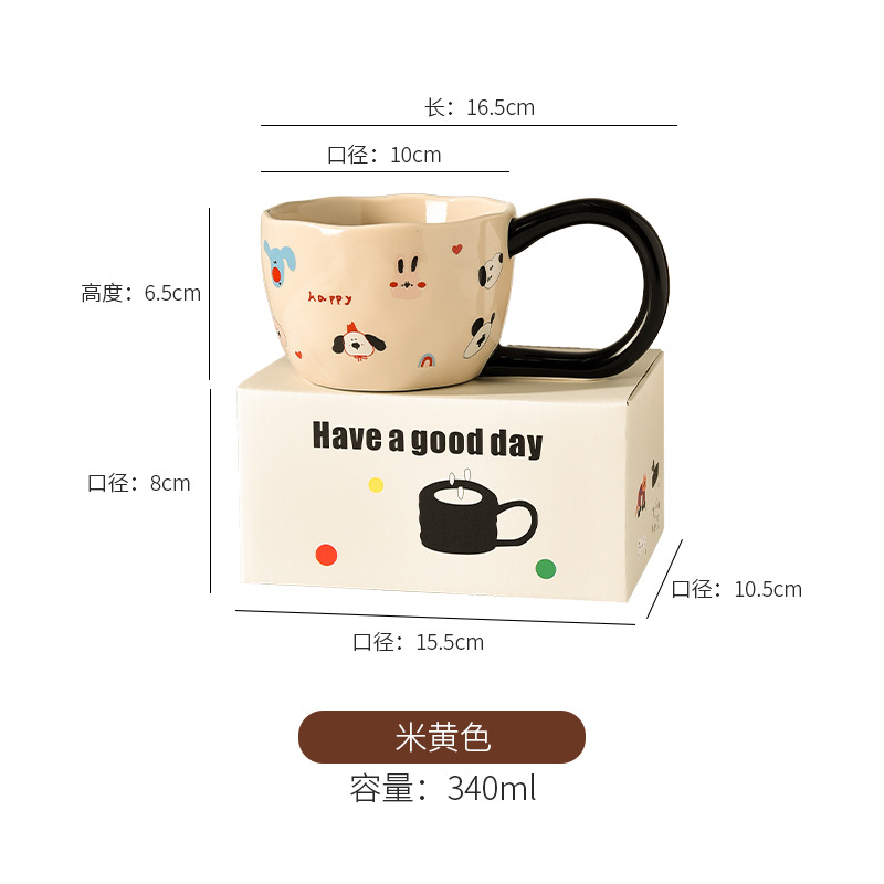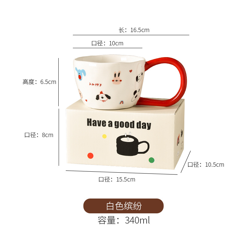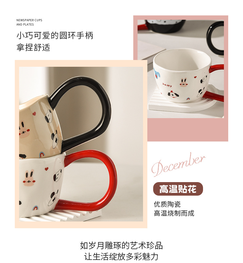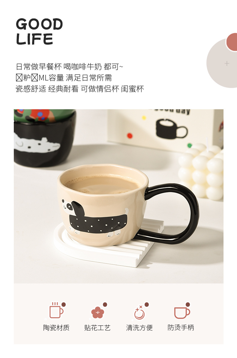 창조적 인 색상 대비 큰 귀 컵 가정용 세라믹 머그잔 높은 가치 컵 만화 강아지 세라믹 컵 커플 물 컵