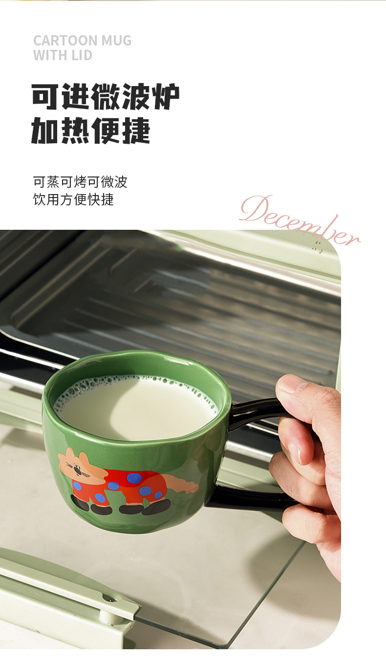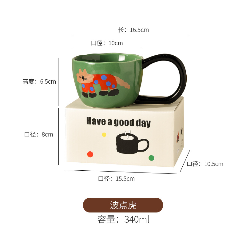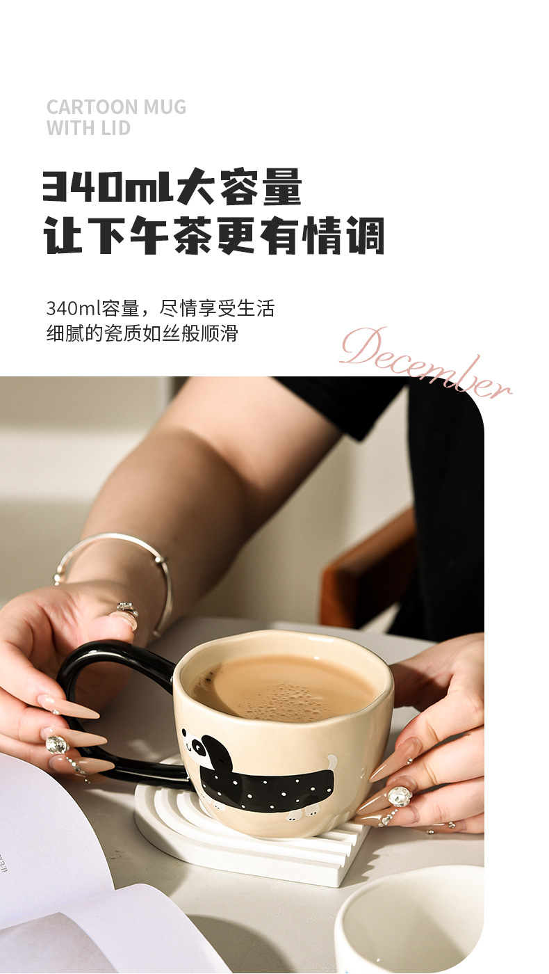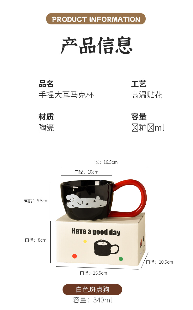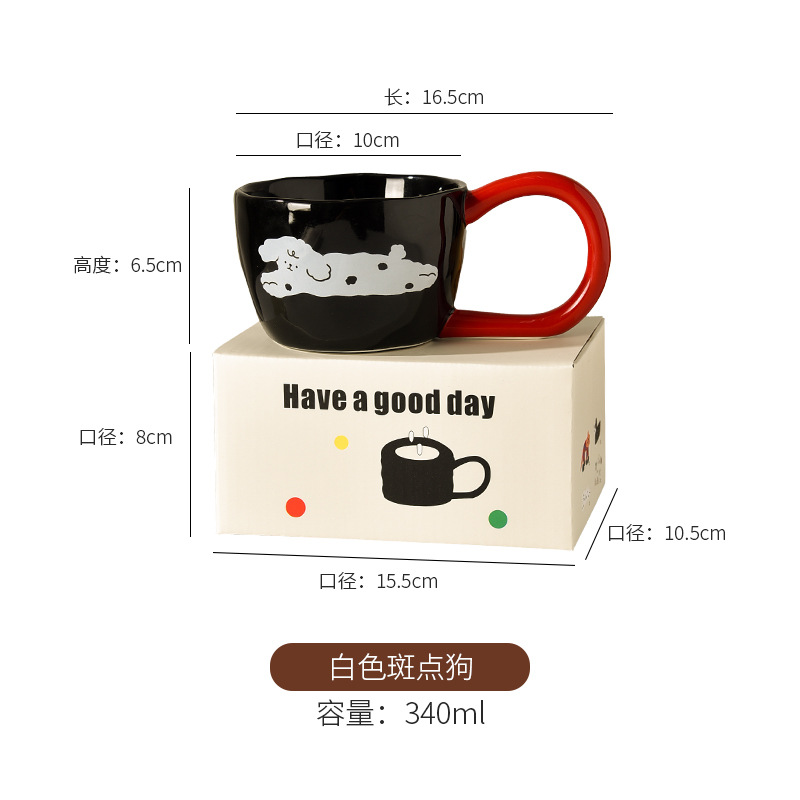 창조적 인 색상 대비 큰 귀 컵 가정용 세라믹 머그잔 높은 가치 컵 만화 강아지 세라믹 컵 커플 물 컵