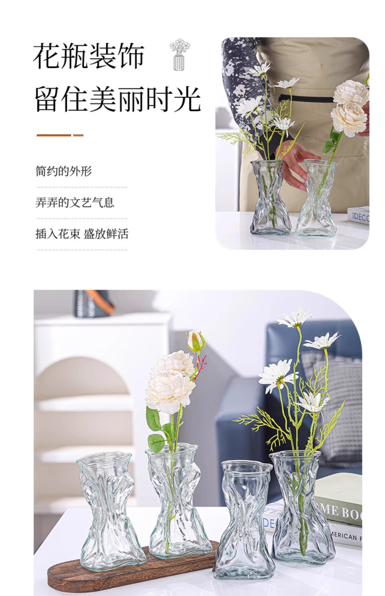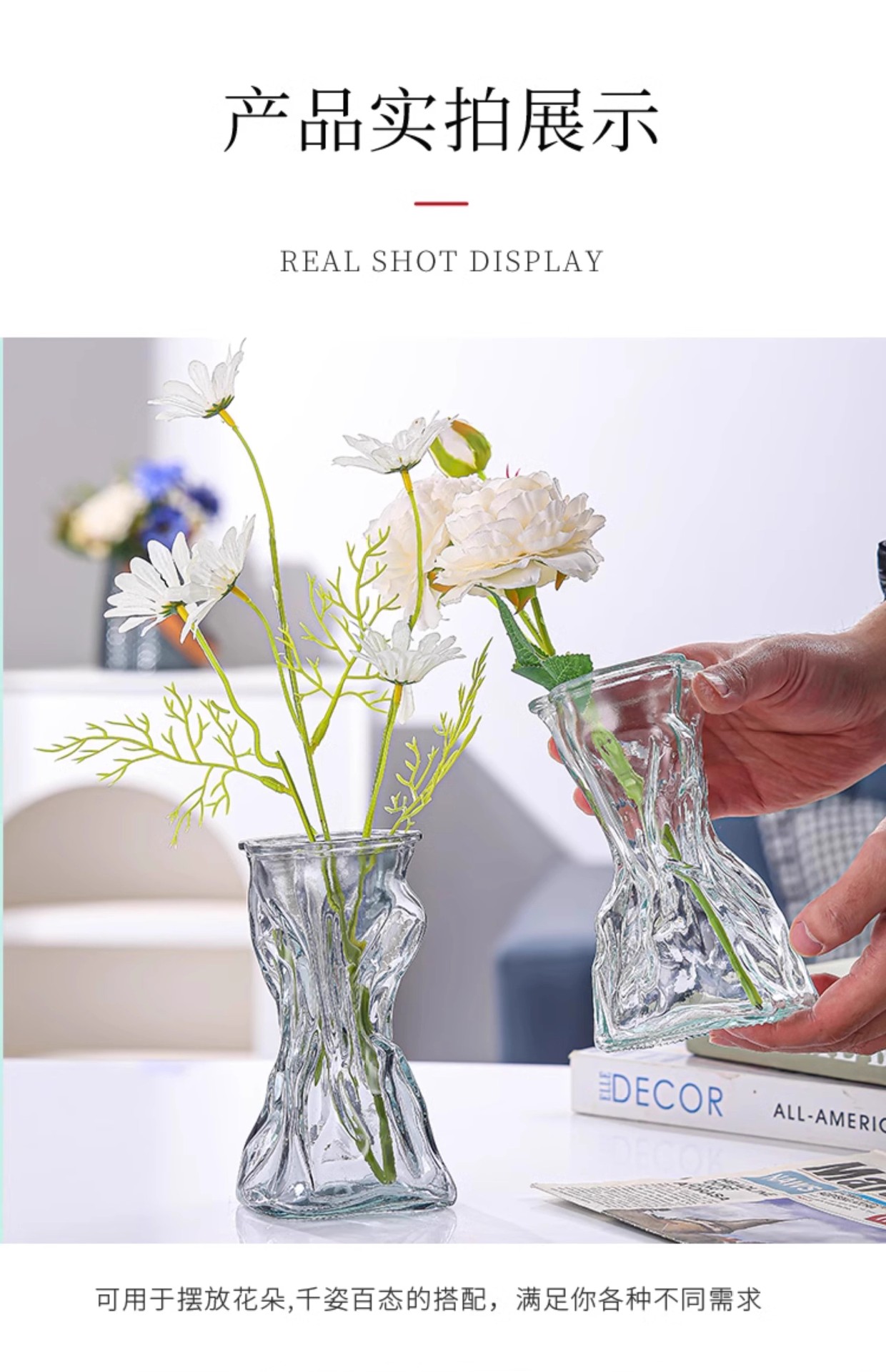 무료 배송 유리 꽃병 불규칙한 스타일 B&B 거실 데스크탑 물 꽃 장식 장식품 꽃병스토어 가기