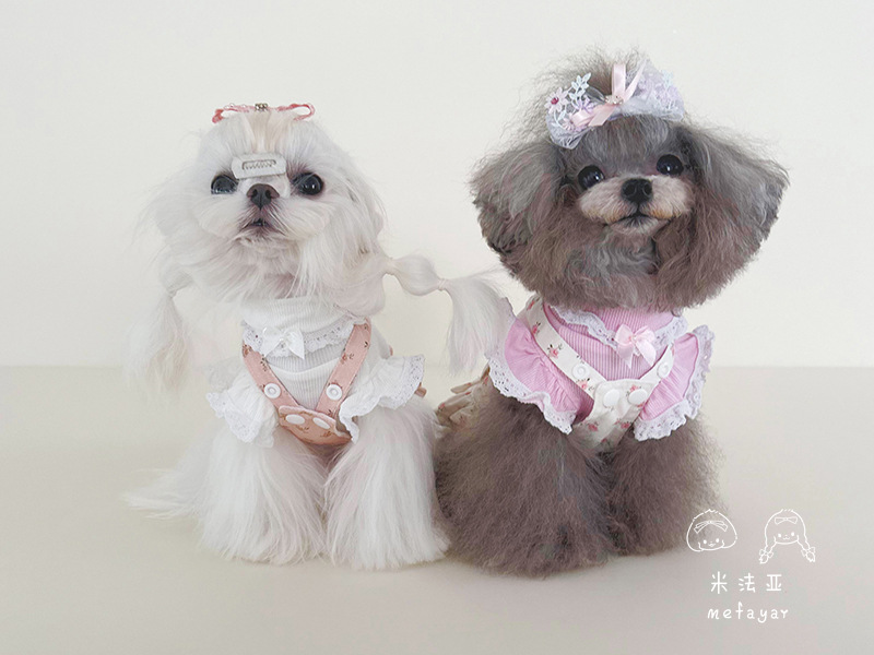 Mifaya 공장 직접 아마존 애완 동물 고양이 개 옷 면화 조커 꽃 끈 절반 길이 케이크 공주 스커트스토어 가기