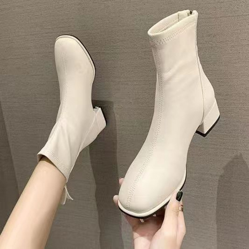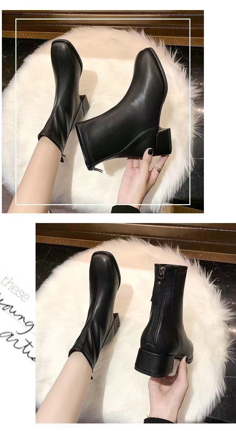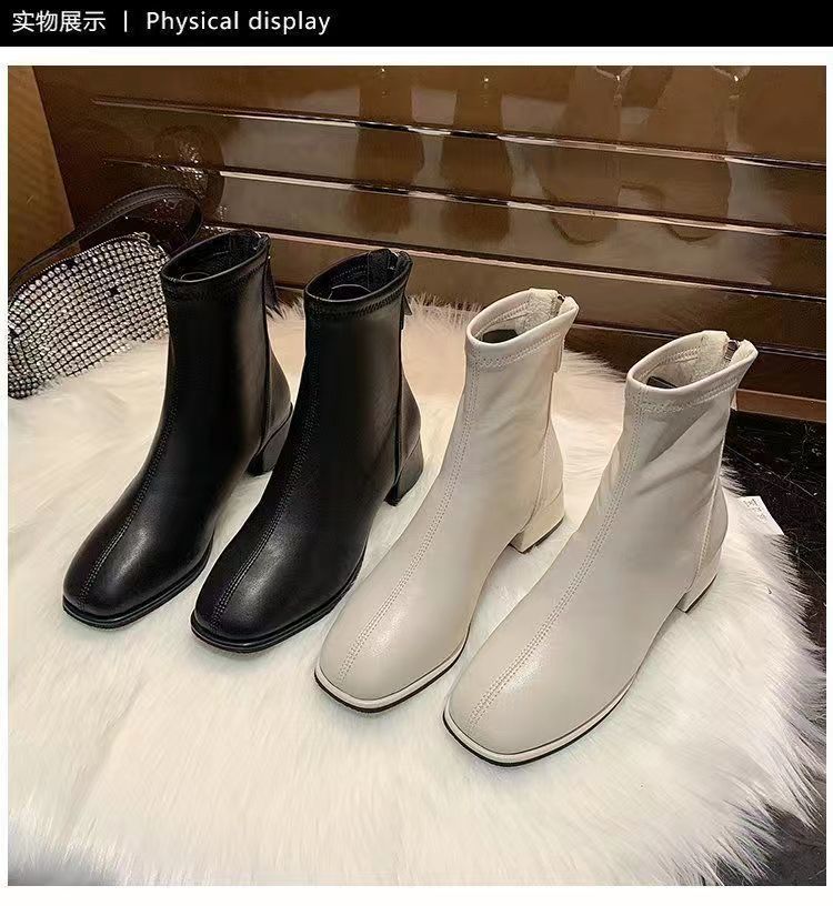Z35-43 대형 여성화 흰색 숏부츠 41 가을 겨울 스퀘어토 슬림 숏부츠 플러스 벨벳 마틴부츠 4