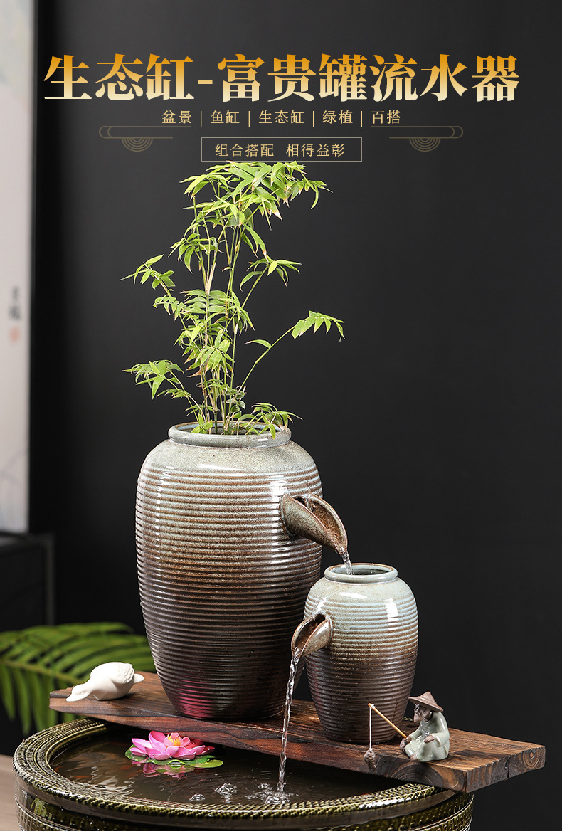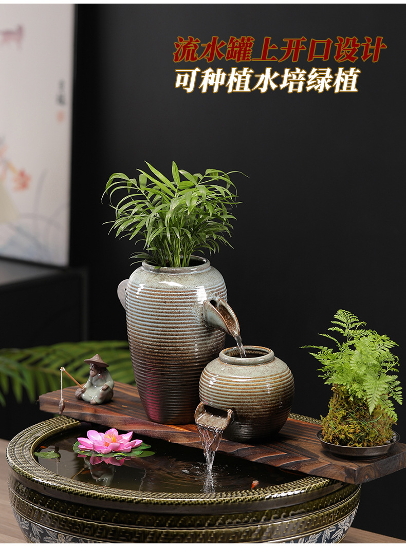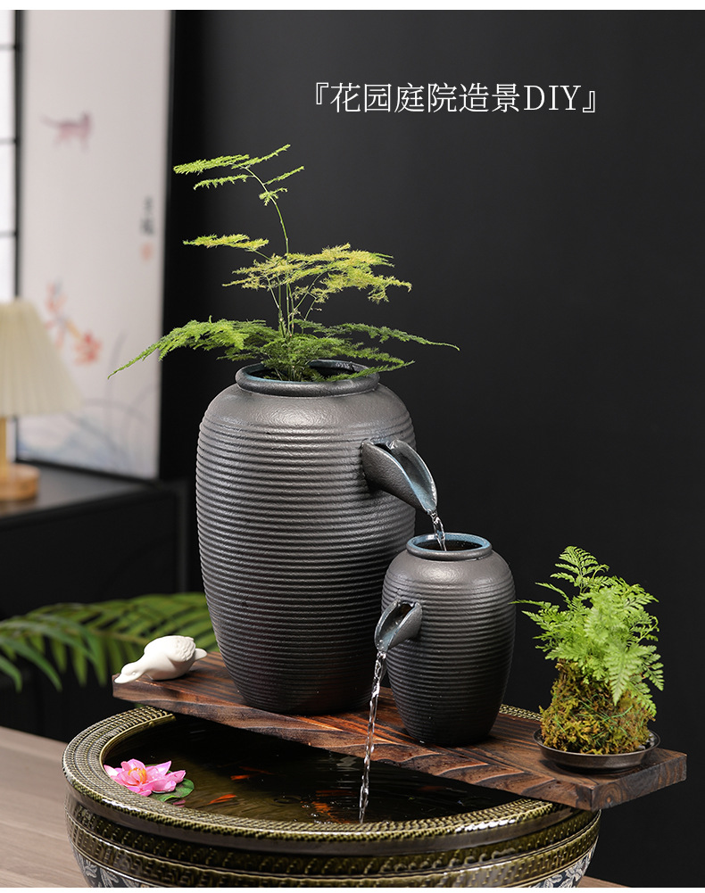 순환 물 높고 낮은 도자기 냄비 세트 식사 방법 물고기 사육 정원 물고기 탱크 풍경 장식품 발코니 야외 물고기 연못 풍경스토어 가기