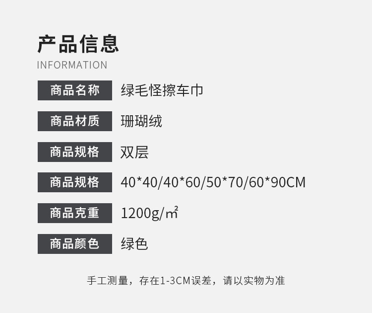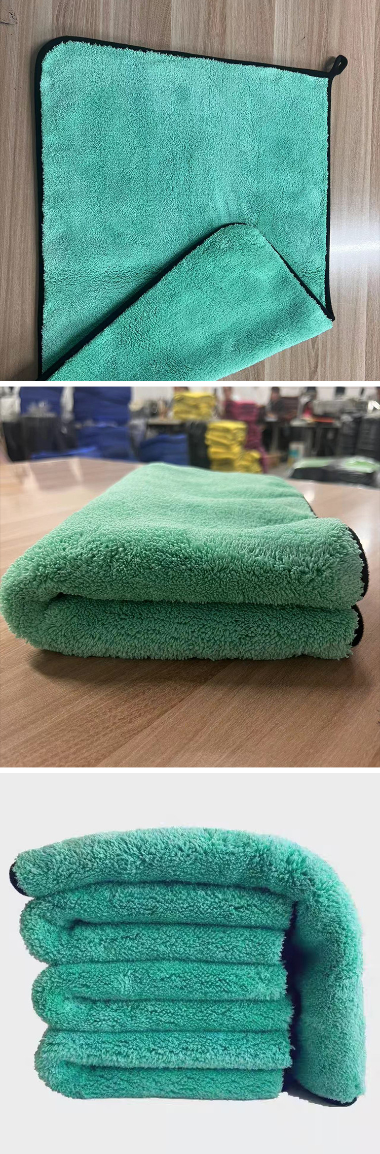1200g 녹색 머리 이상한 물 수건 도매 고급 섬유 흡수성 자동차 천 두꺼운 이중 산호 양털 세차 수건