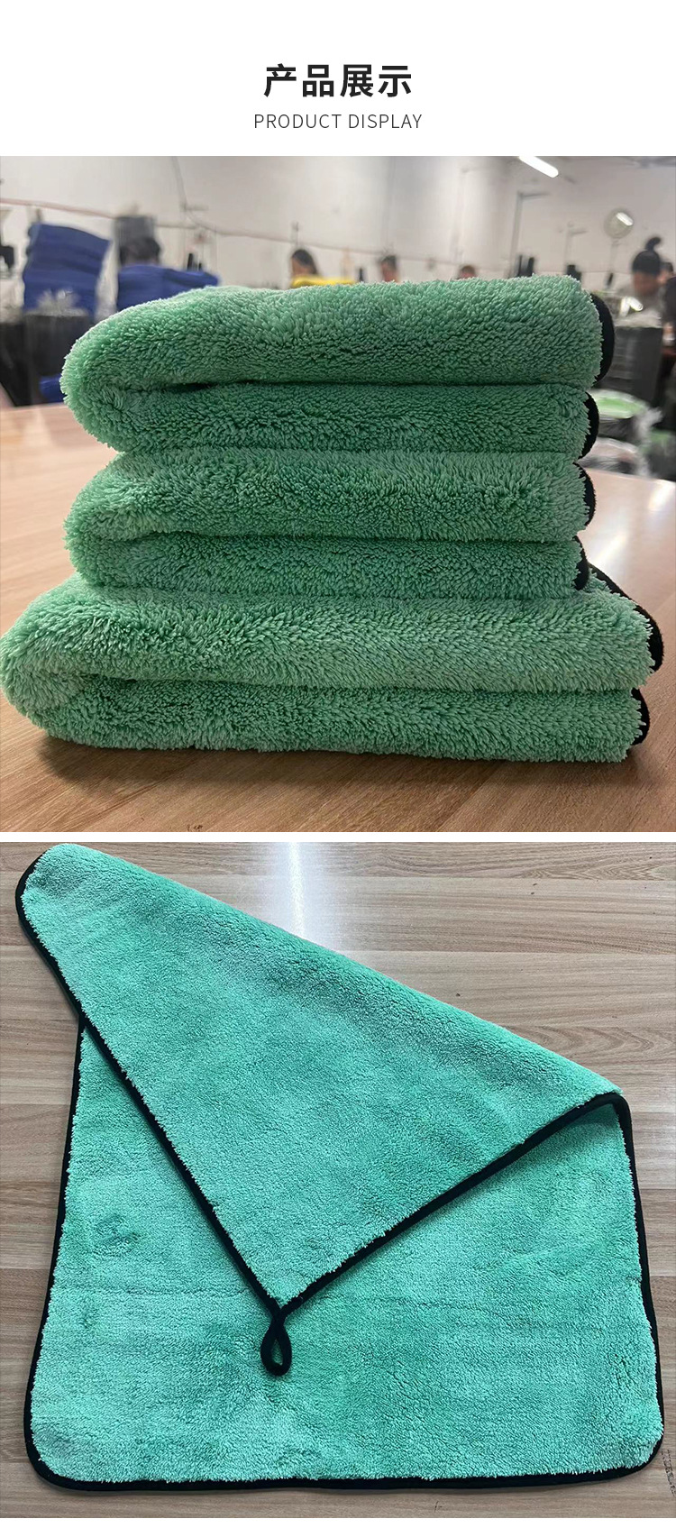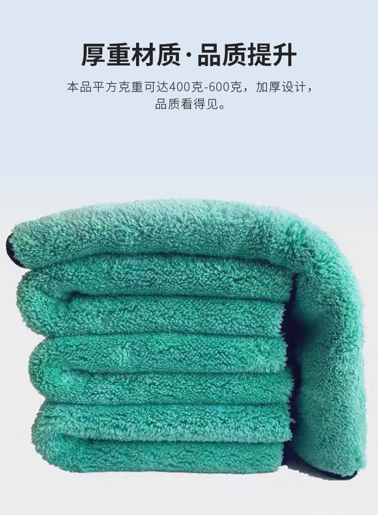 1200g 녹색 머리 이상한 물 수건 도매 고급 섬유 흡수성 자동차 천 두꺼운 이중 산호 양털 세차 수건스토어 가기