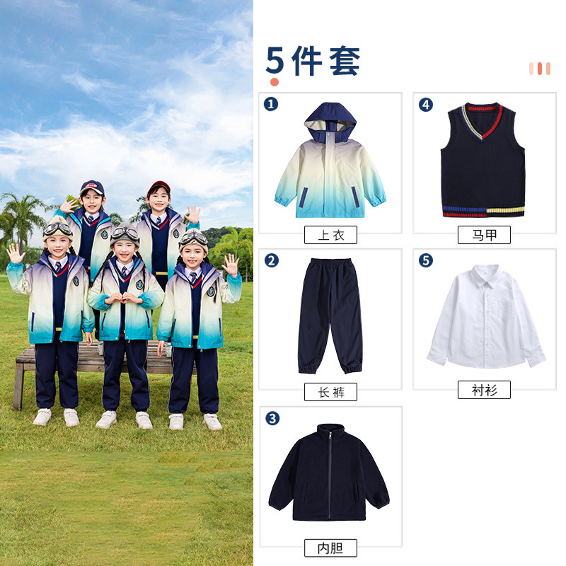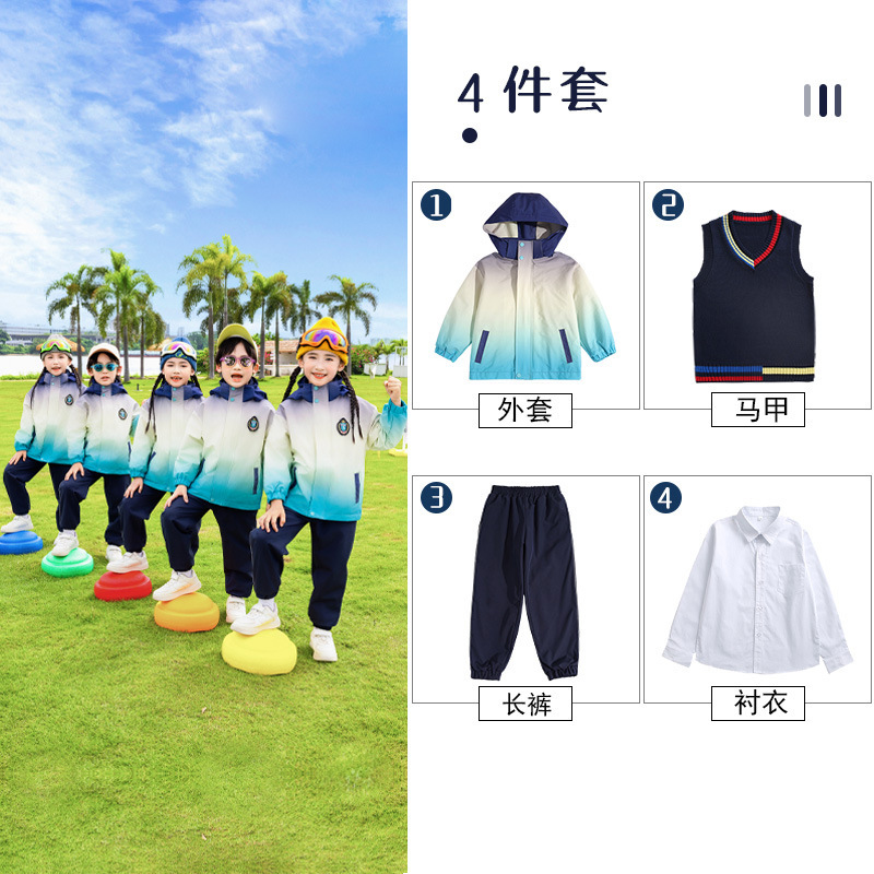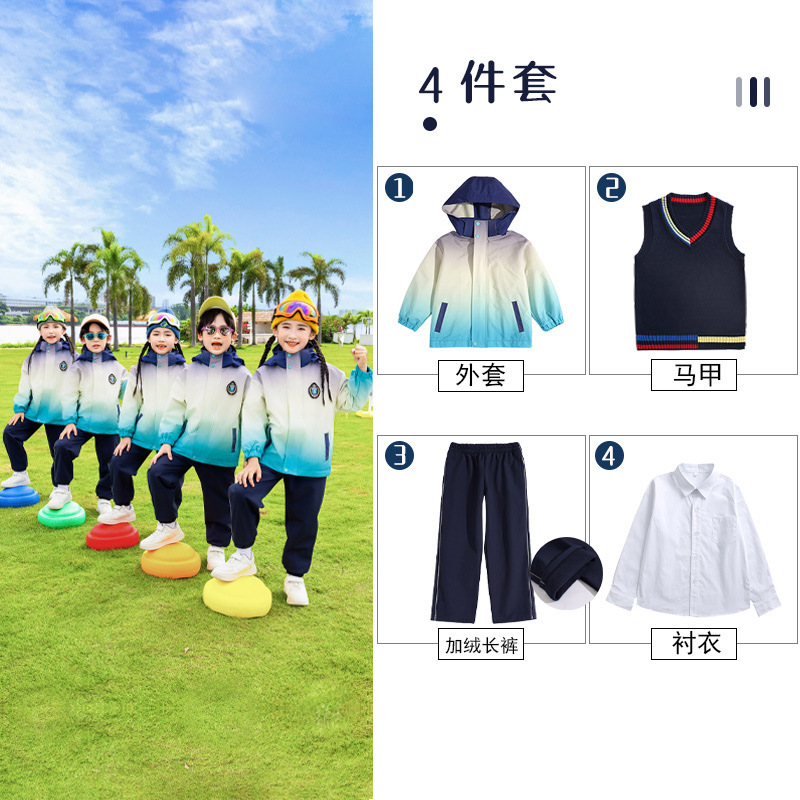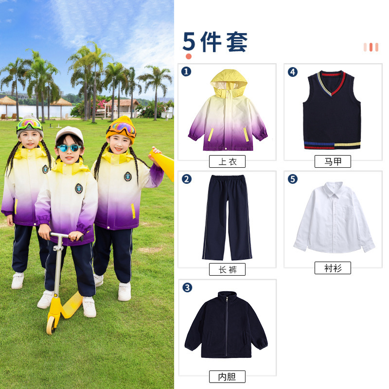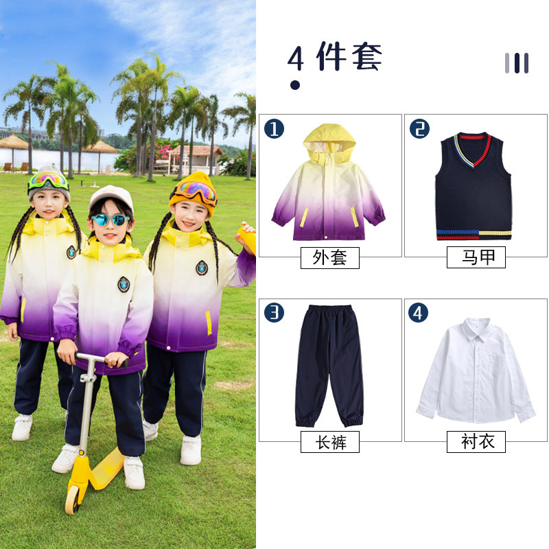 유치원 정원 옷 봄과 가을 옷 1 학년 보라색 수업 옷 3 피스 세트 초등학교 학생 교복 가을과 겨울 세트스토어 가기