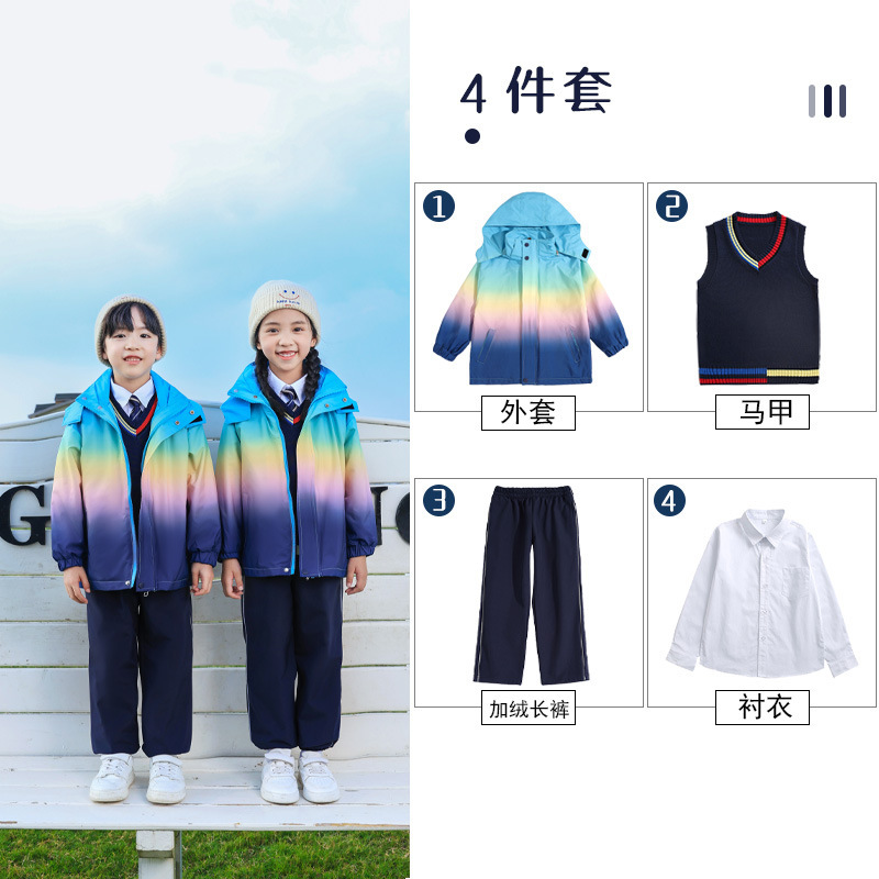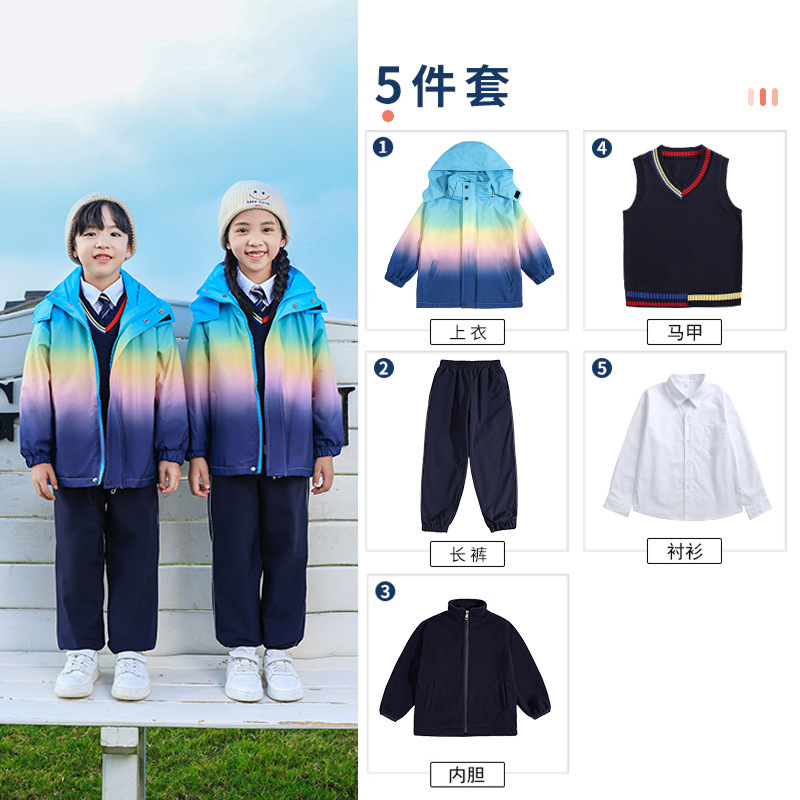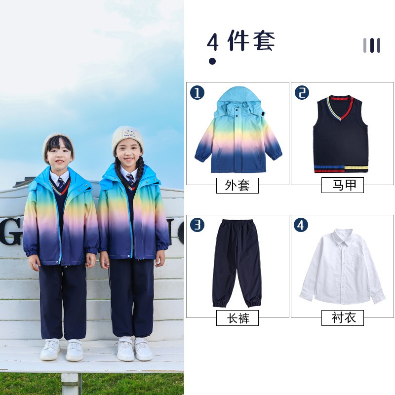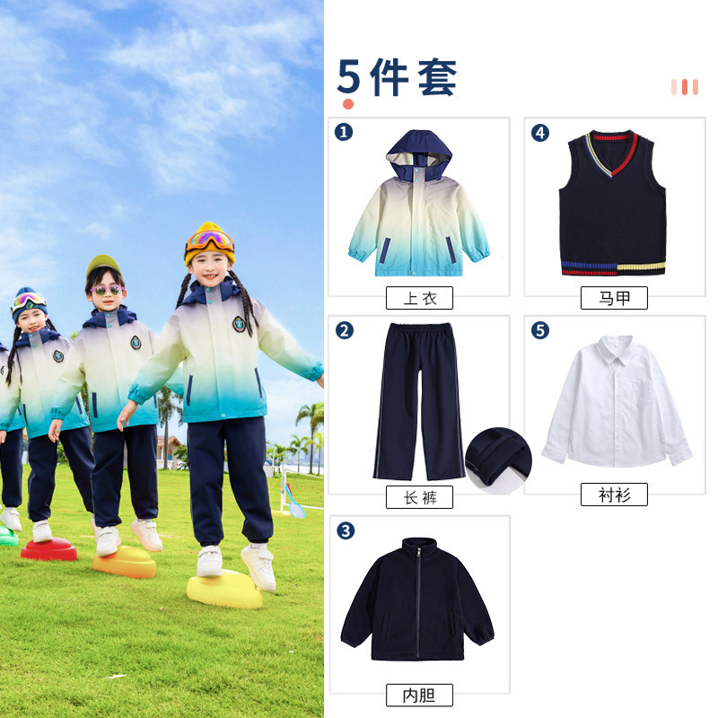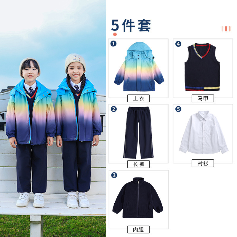 유치원 정원 옷 봄과 가을 옷 1 학년 보라색 수업 옷 3 피스 세트 초등학교 학생 교복 가을과 겨울 세트스토어 가기
