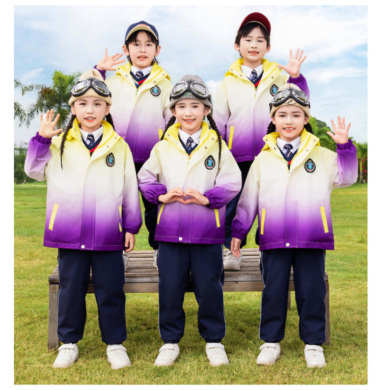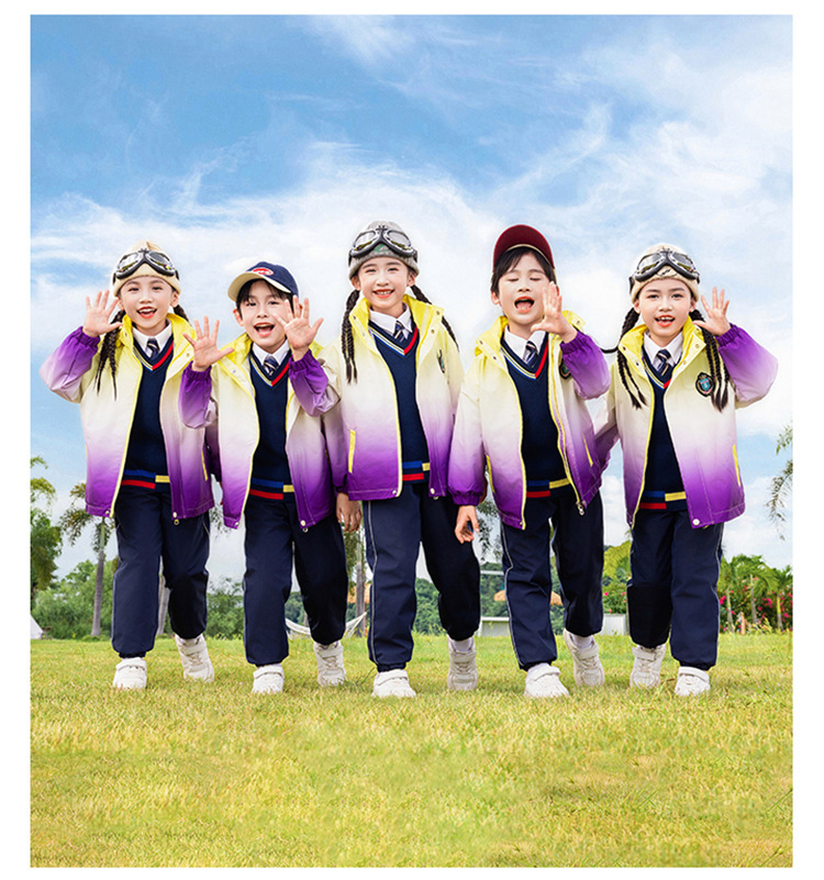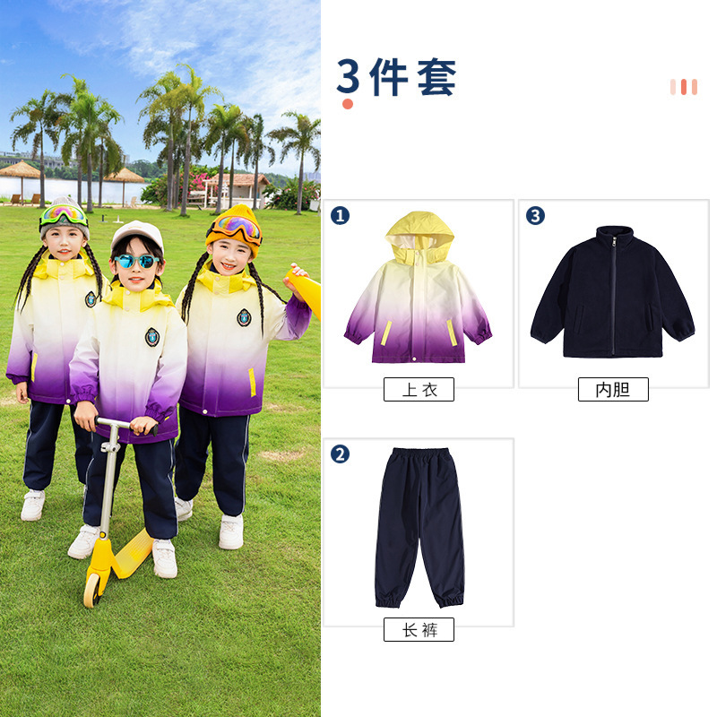 유치원 정원 옷 봄과 가을 옷 1 학년 보라색 수업 옷 3 피스 세트 초등학교 학생 교복 가을과 겨울 세트