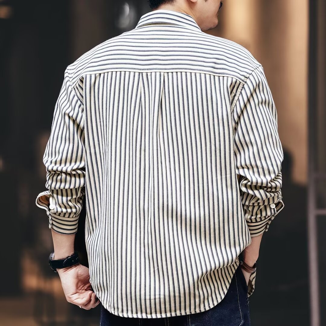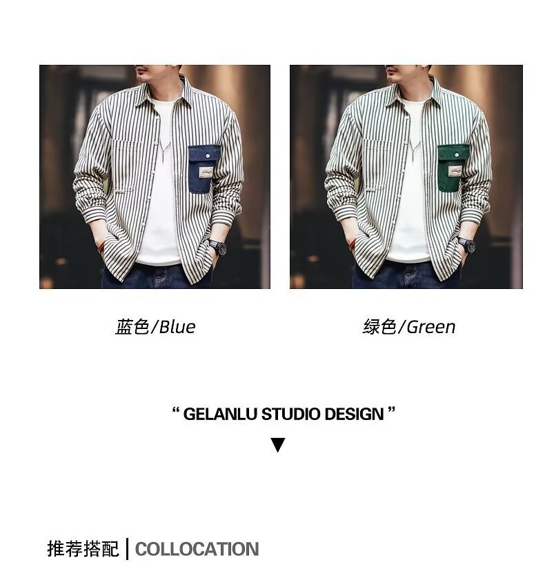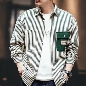 가을 하이 엔드 센스 캐주얼 스트라이프 셔츠 남자 한국식 하이 스트리트 트렌디 브랜드 패셔너블 아웃 탑 재킷 라이트 성숙한 스타일스토어 가기