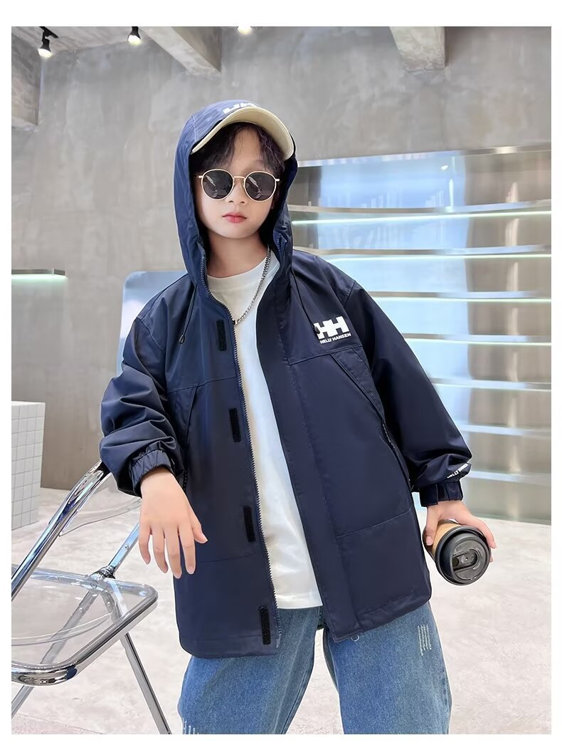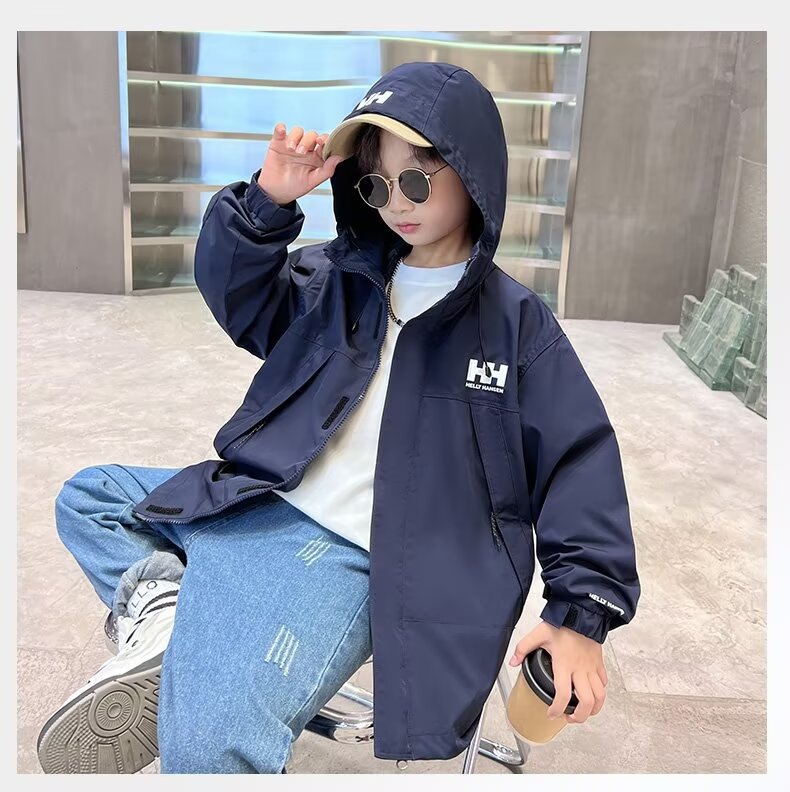 소년 코트 봄과 가을 어린이 의류 가을 재킷 2024 새로운 도착 더피 잘 생긴 소년 가을 툴링 러쉬 의류 트렌디