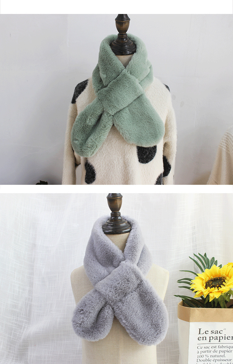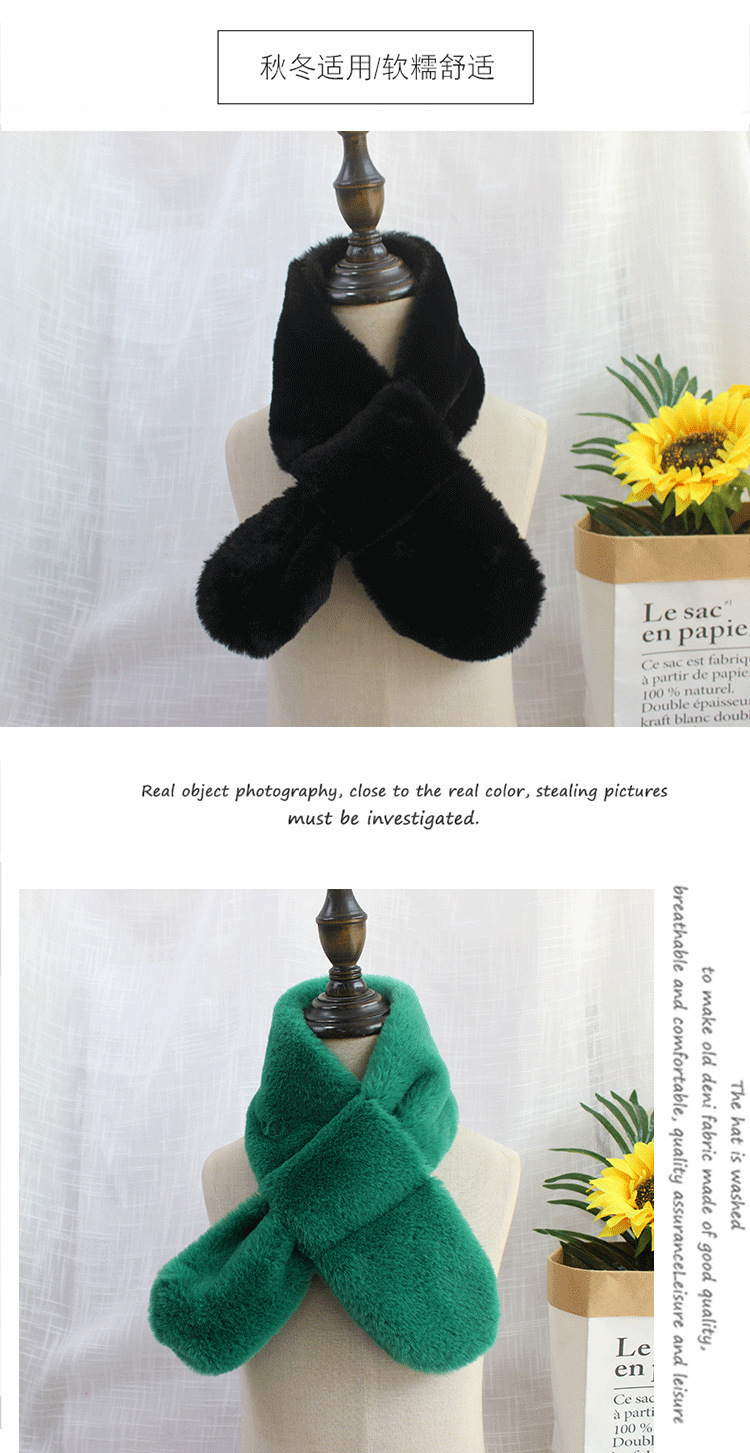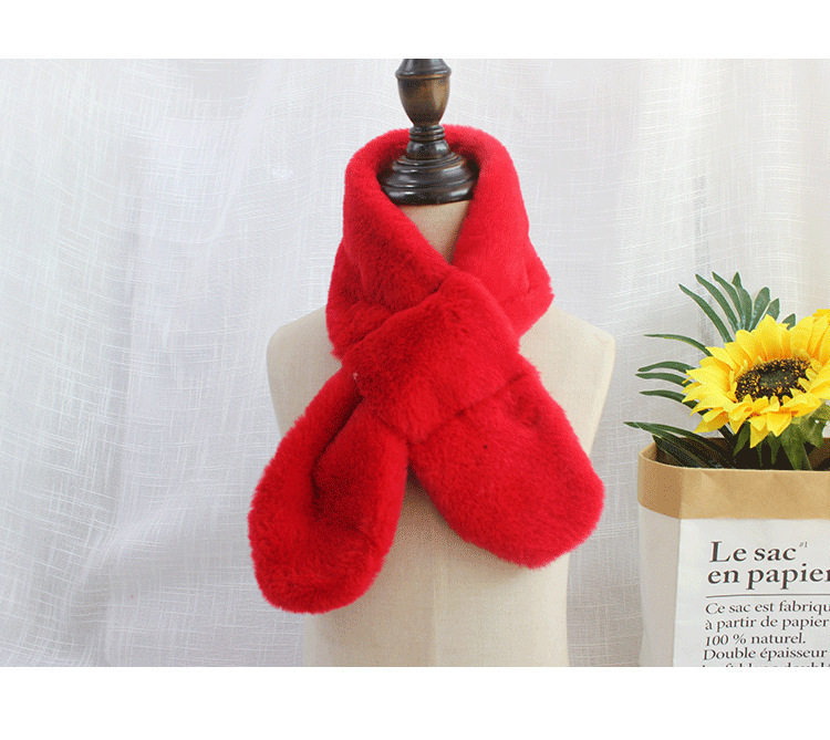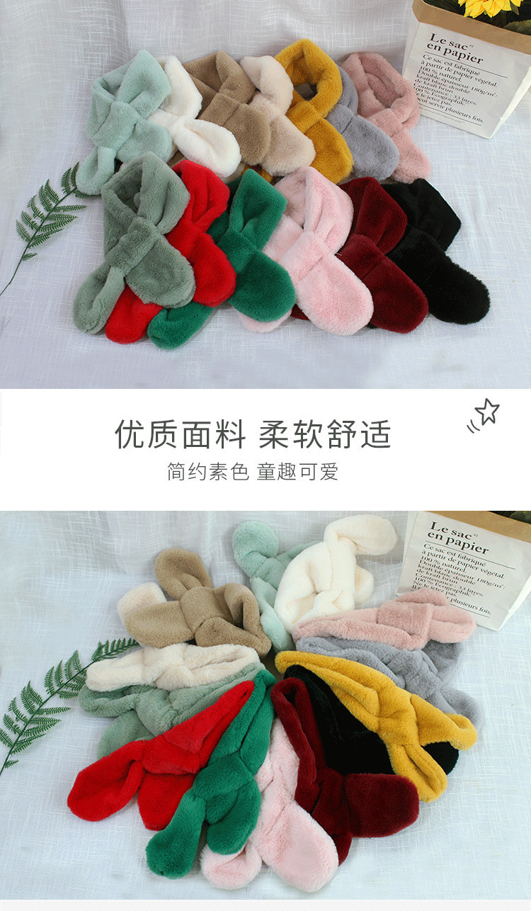 2024 대외 무역 단색 어린이 스카프 가을과 겨울 따뜻한 라이트 플레이트 여성의 모조 토끼 모피 두꺼운 따뜻한 아기 스카프 도매스토어 가기