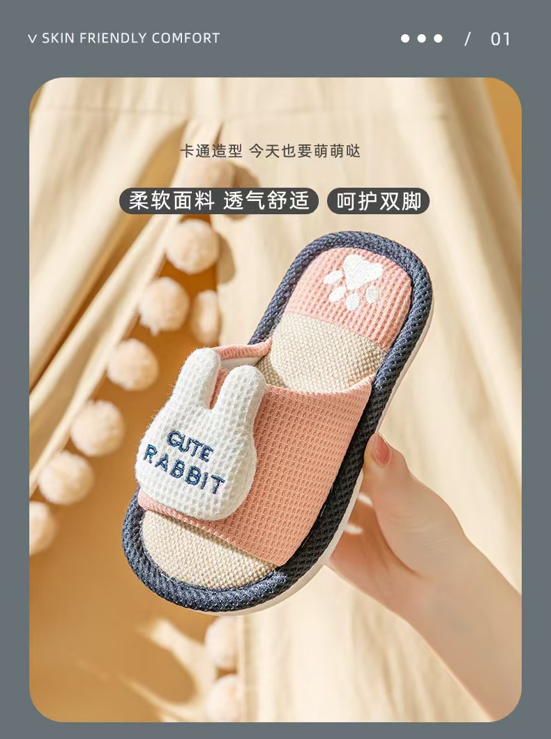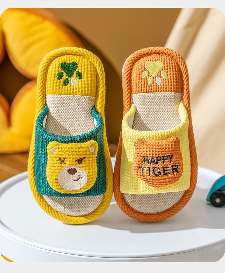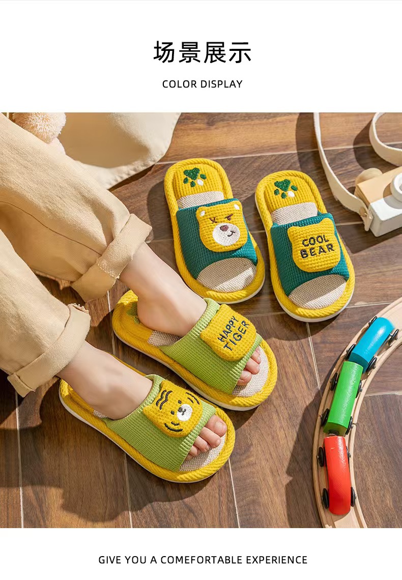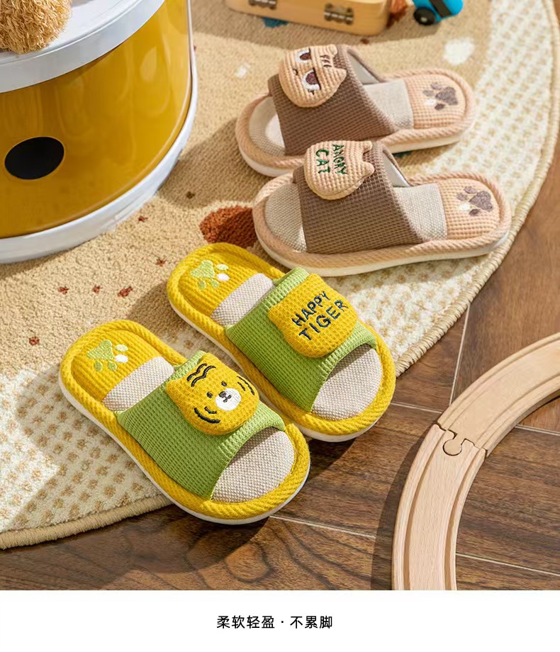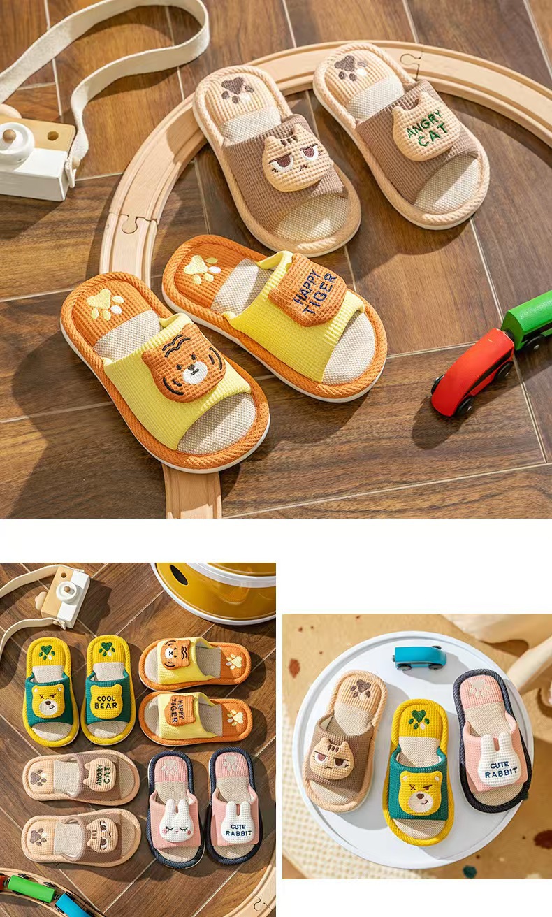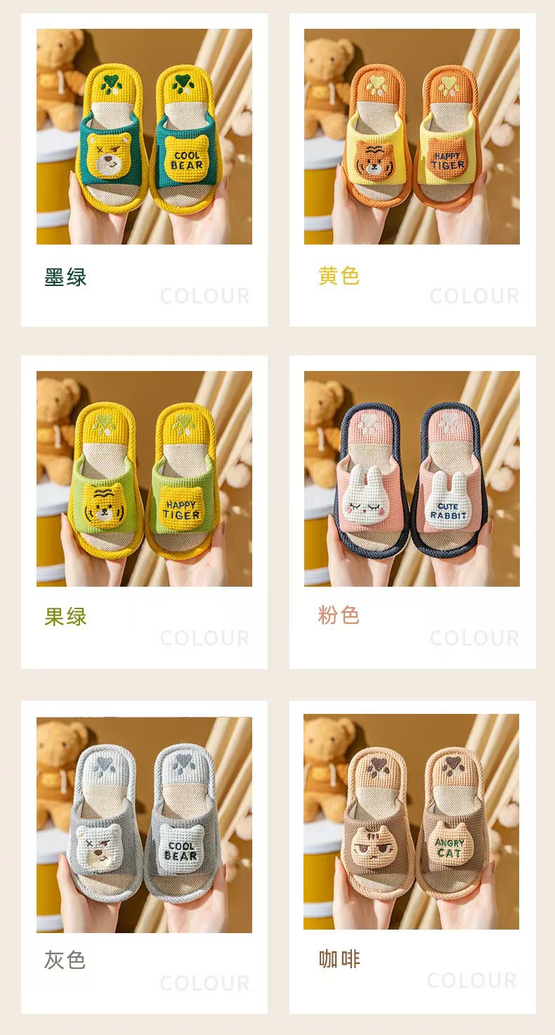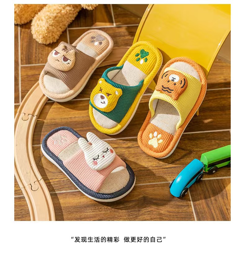 어린이용 슬리퍼, 만화 캐릭터, 여아, 귀여운 남아, 실내용, 중대형 어린이용, 가정용, 미끄럼 방지, 린넨 슬리퍼, 사계절용스토어 가기