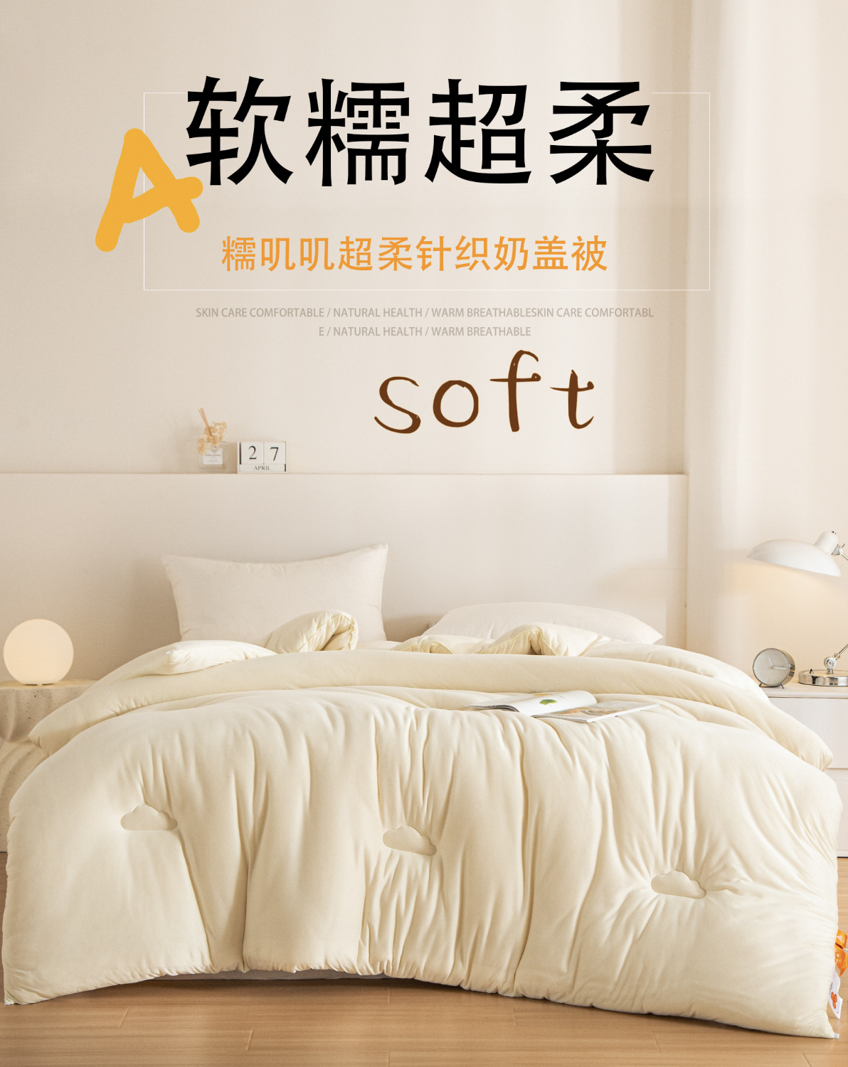 A급 니트 면 소이섬유 이불, 겨울용 이불, 학생용 봄, 가을용 이불, 니트 부드러운 밀랍 커버 이불, 부드럽고 피부 친화적인 이불심