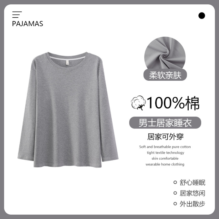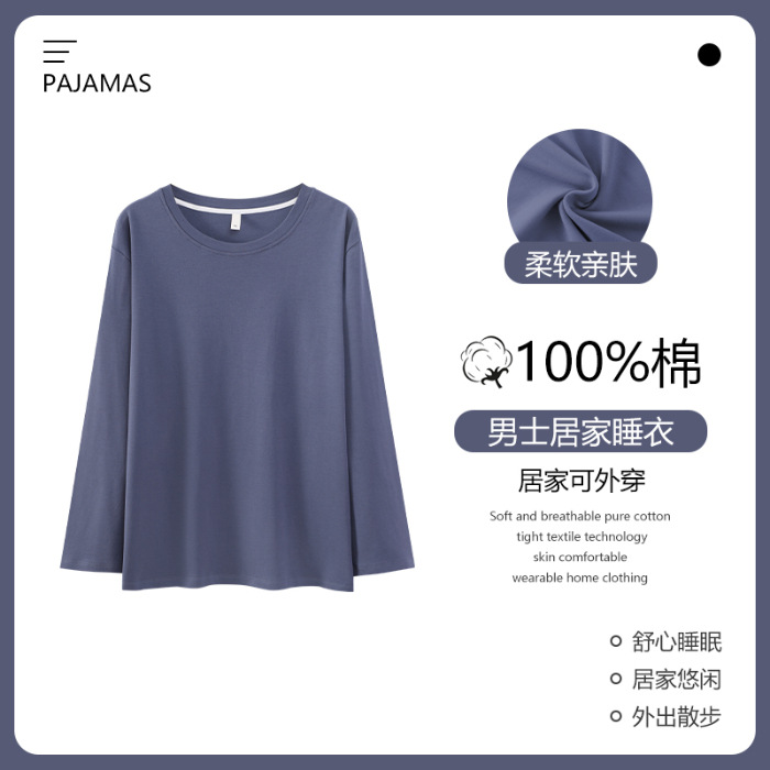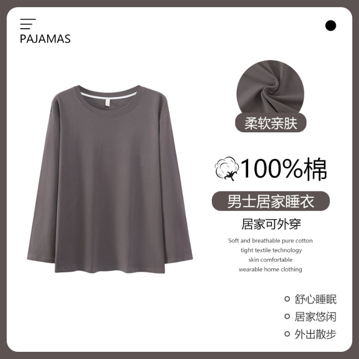 순면 남성 잠옷 가을 싱글 피스 긴팔 얇은 탑 홈 의류 여름 에어컨 라이브 솔리드 컬러 퓨어 코튼 남성 스타일스토어 가기