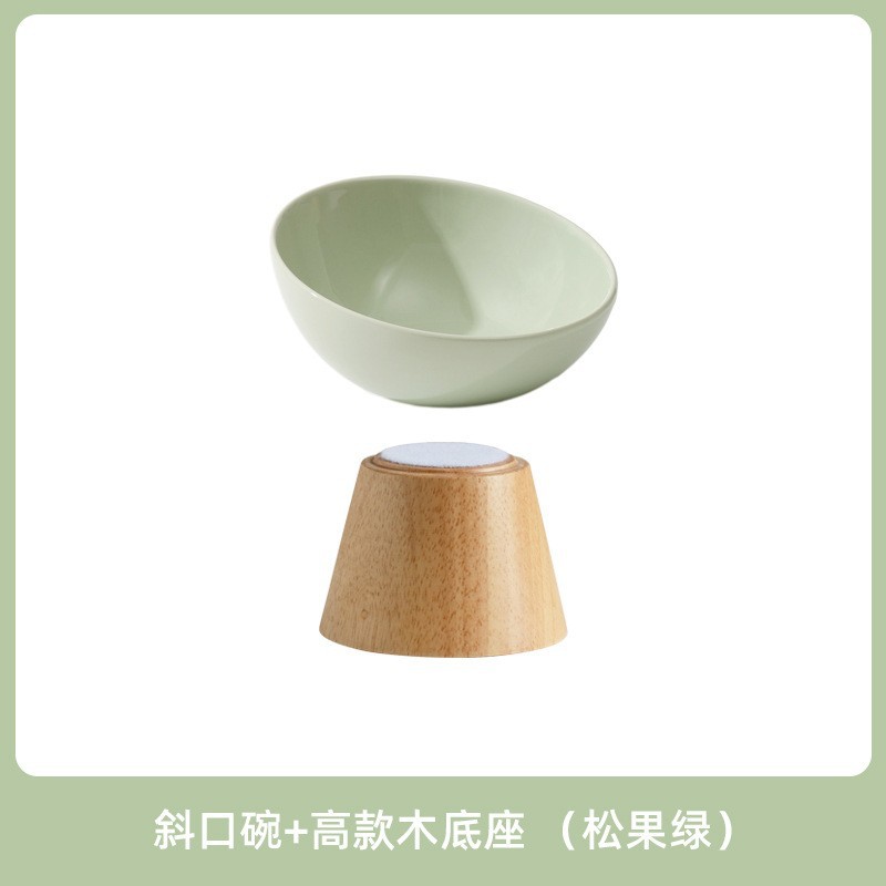 공장 직접 나무 좌석 애완 동물 그릇 세라믹 고양이 그릇 안티 노크 자궁 경부 보호 마시는 그릇 애완 동물 세라믹 그릇 경사스토어 가기
